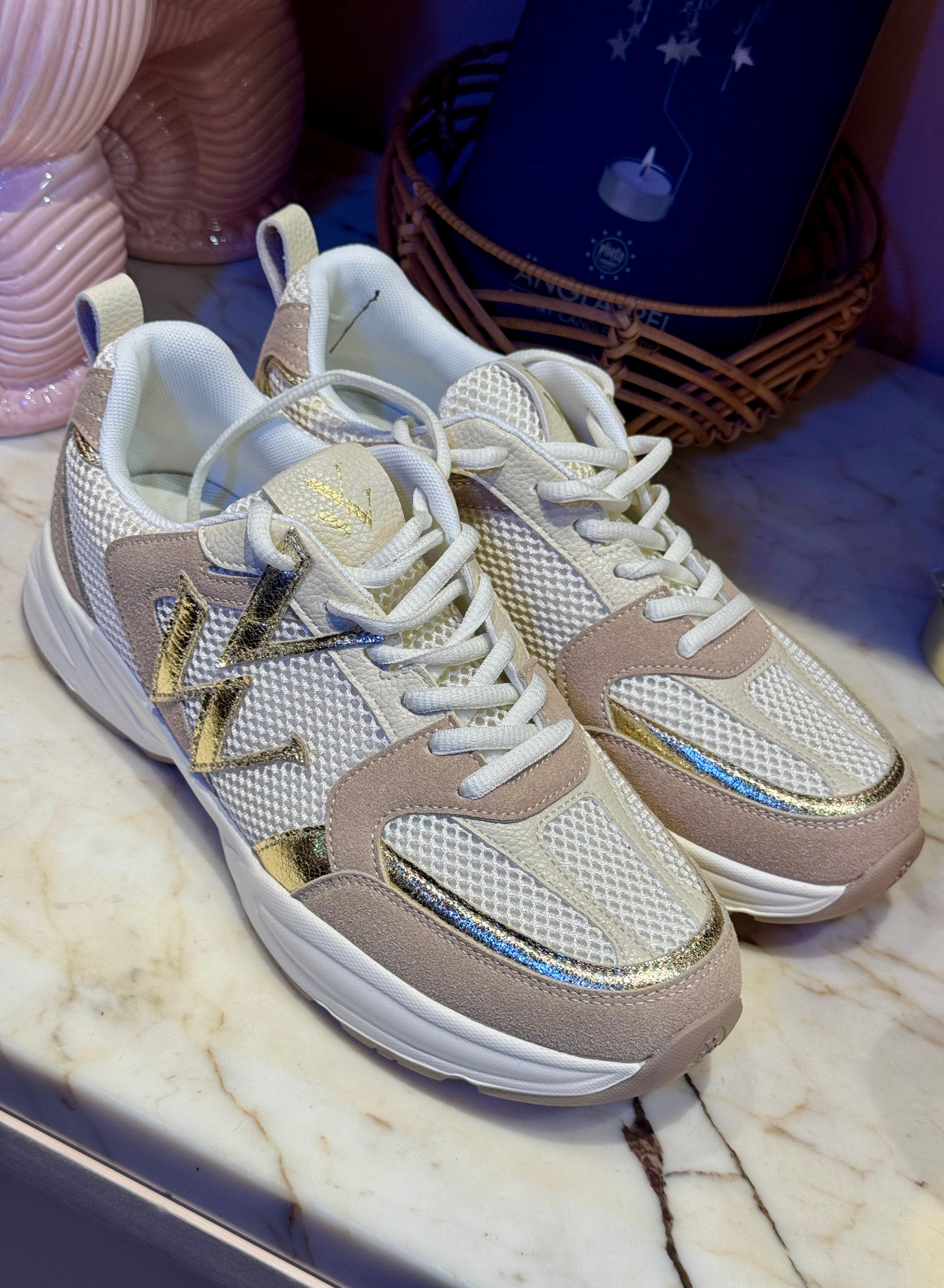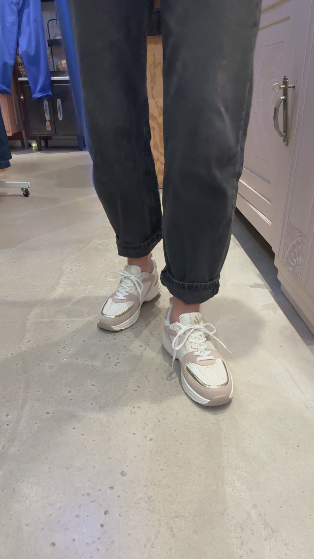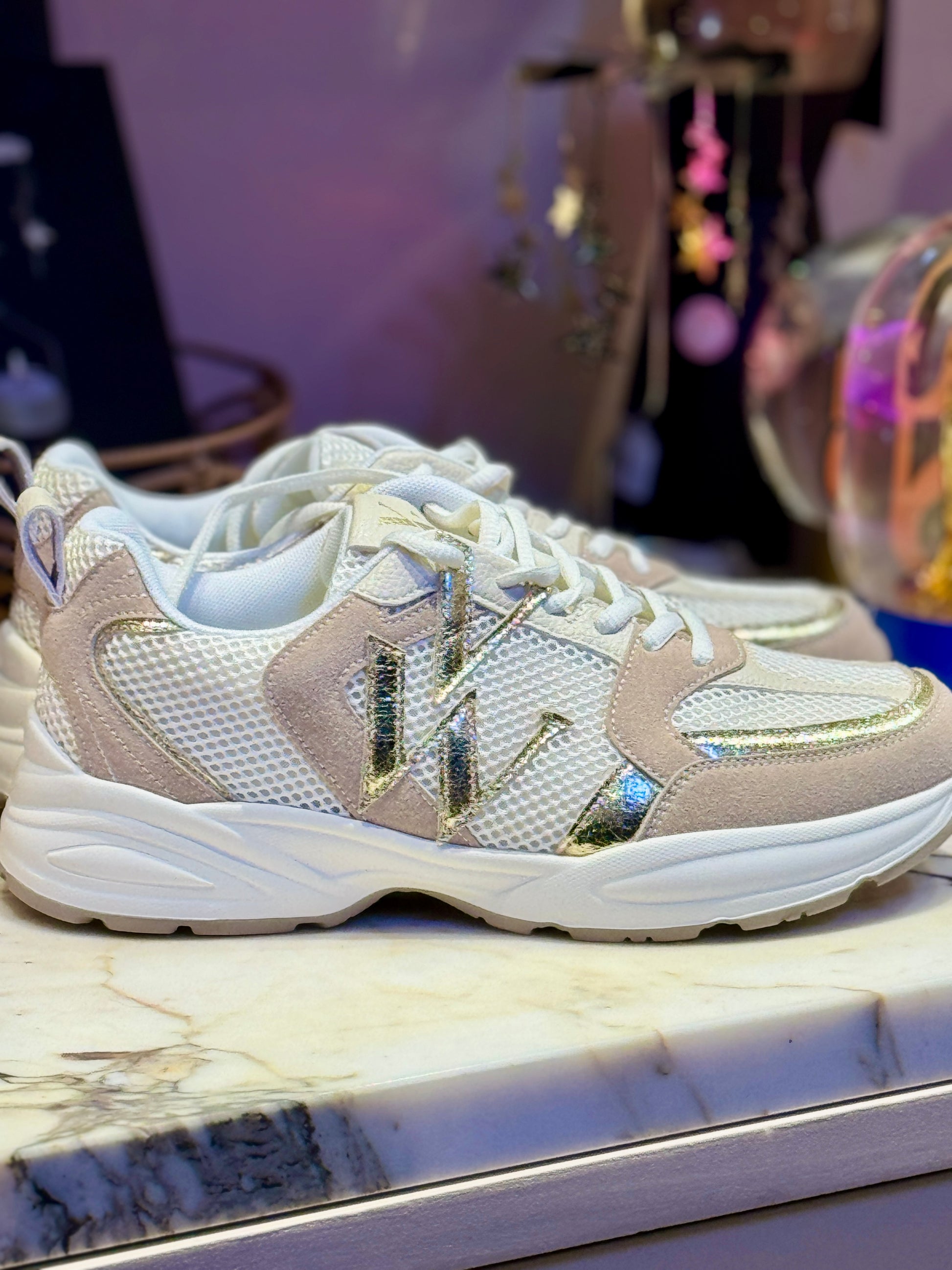 - Garants en similicuir beige clair effet grainé débordant sur l'empeigne