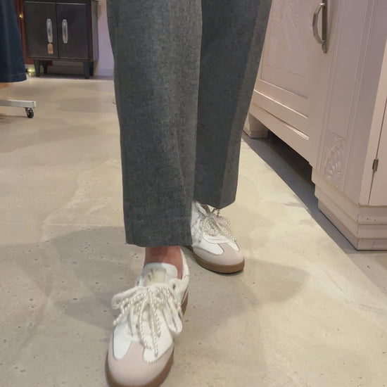 - Fermeture à lacets en tissu dentelé blanc avec bijou fantaisie à perles