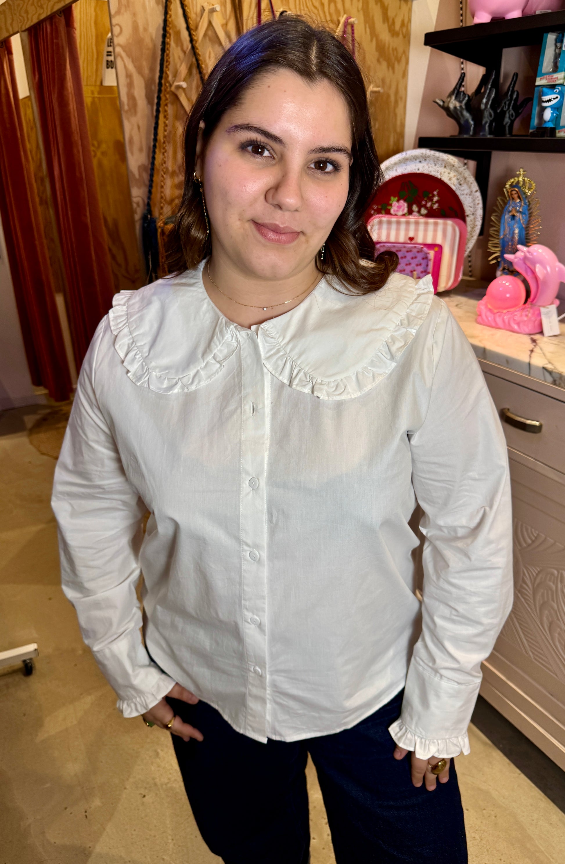 Absolument canon, chemise à grand col Claudine à porter décalé pour un look preppy qu'on adore !