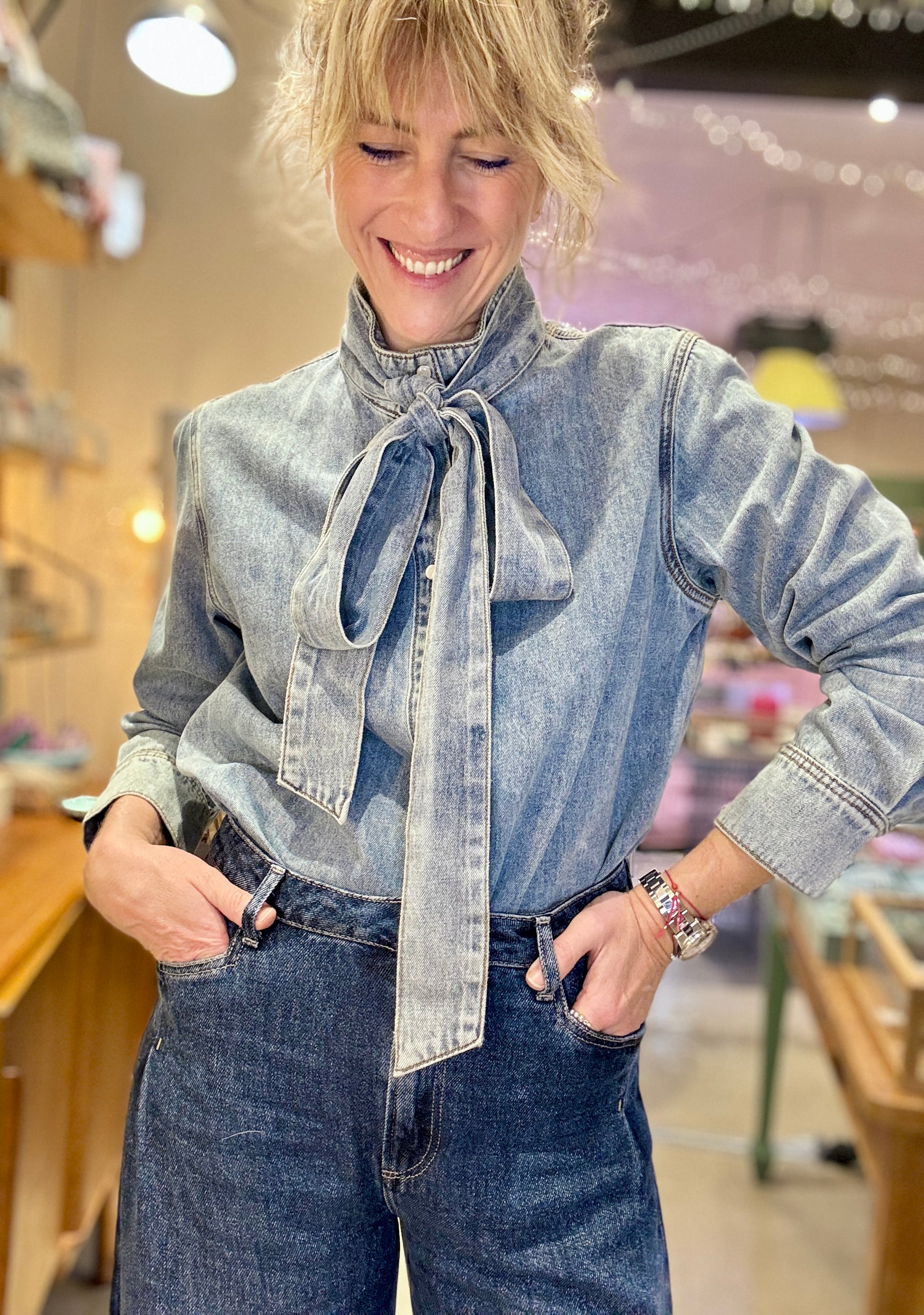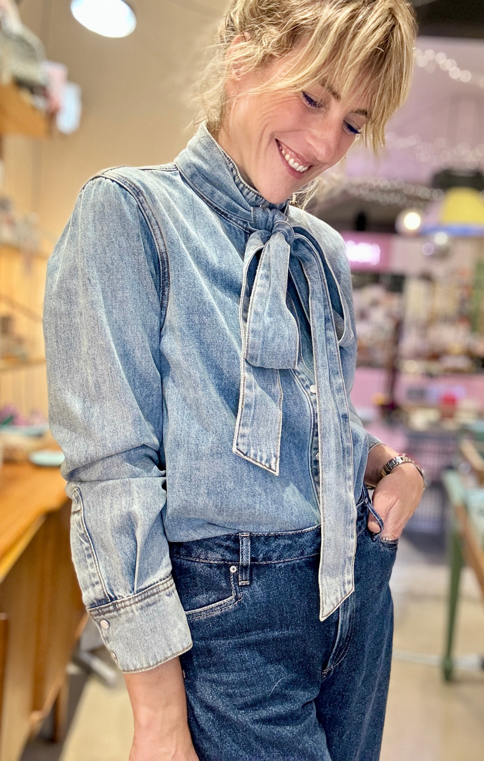 Gros coup de coeur pour cette chemise en jean à noeud.