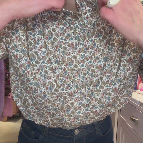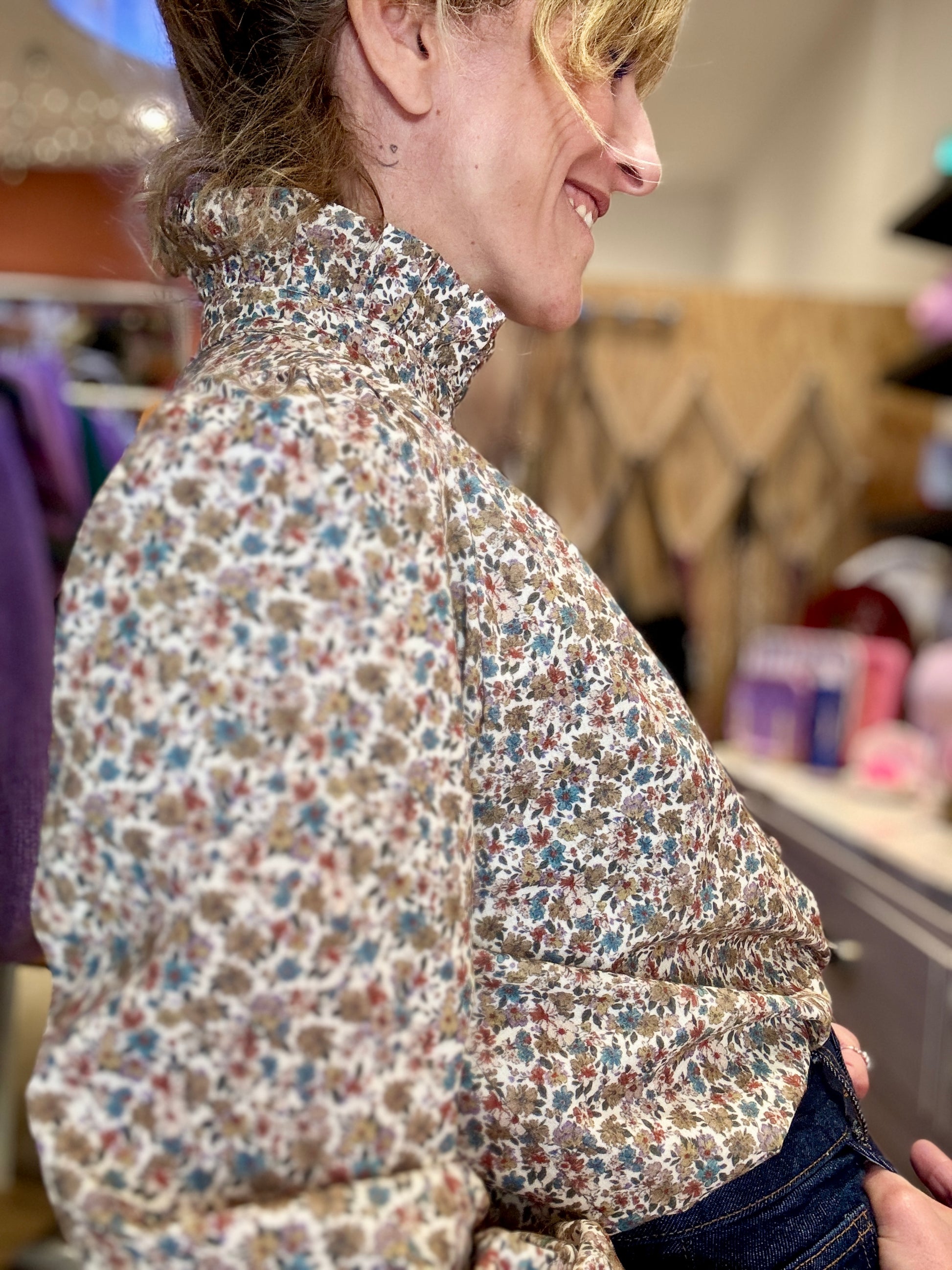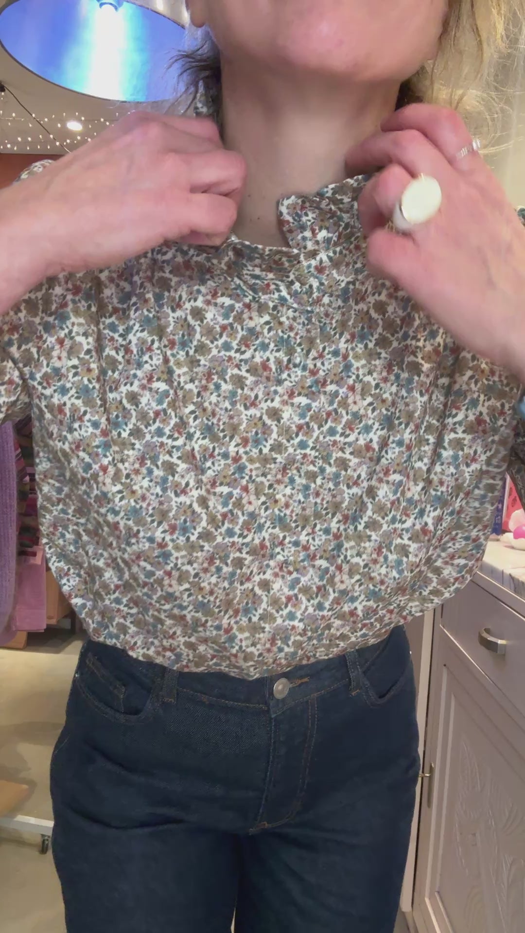 Coupe droite avec fronces aux épaules, fermée par boutons.