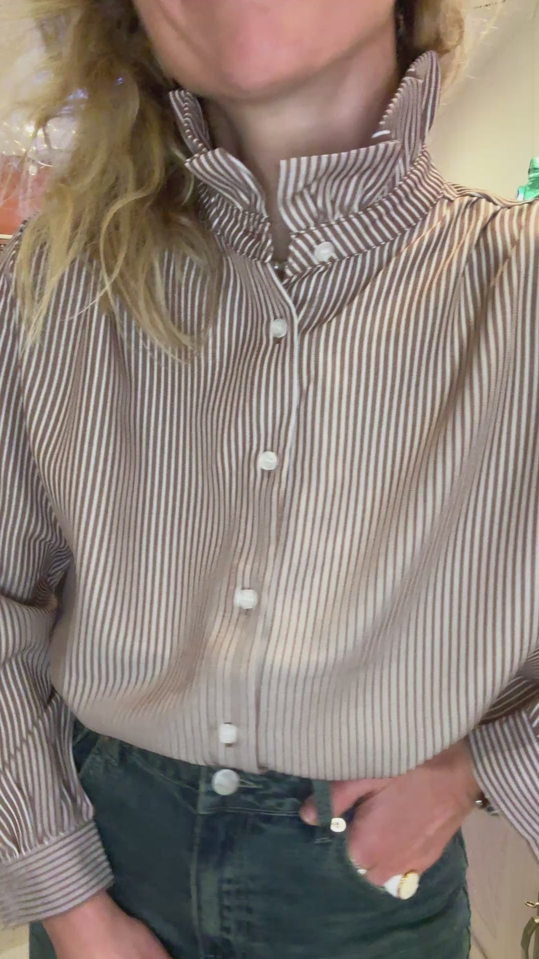 Coupe droite avec fronces aux épaules, fermée par boutons.