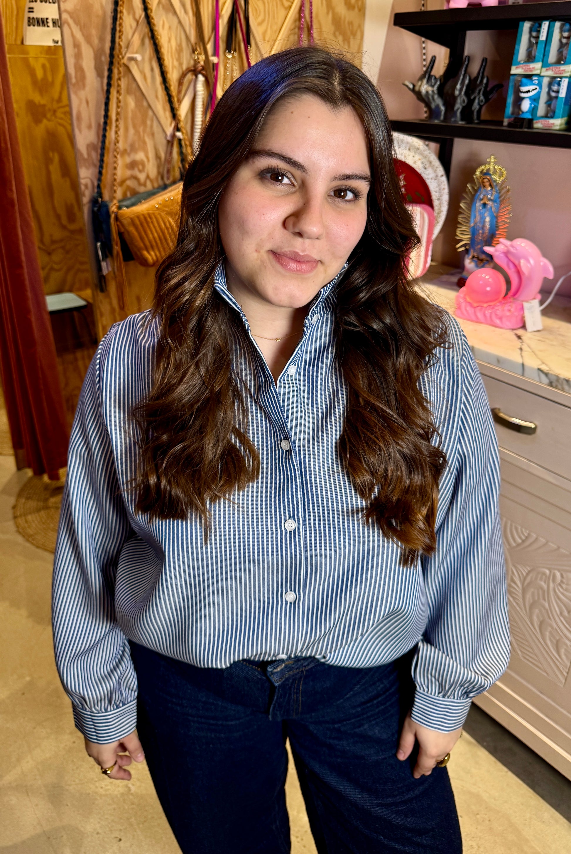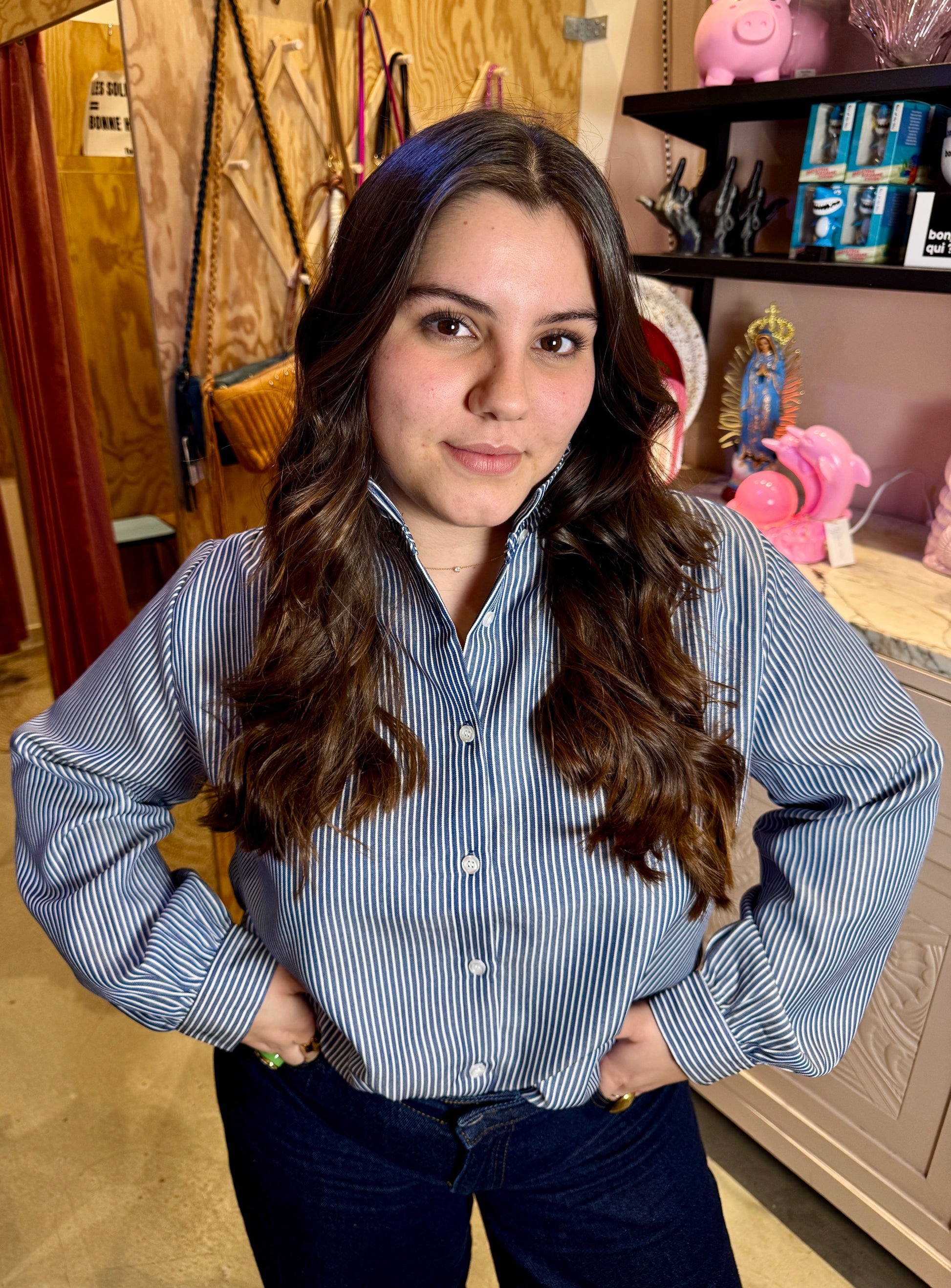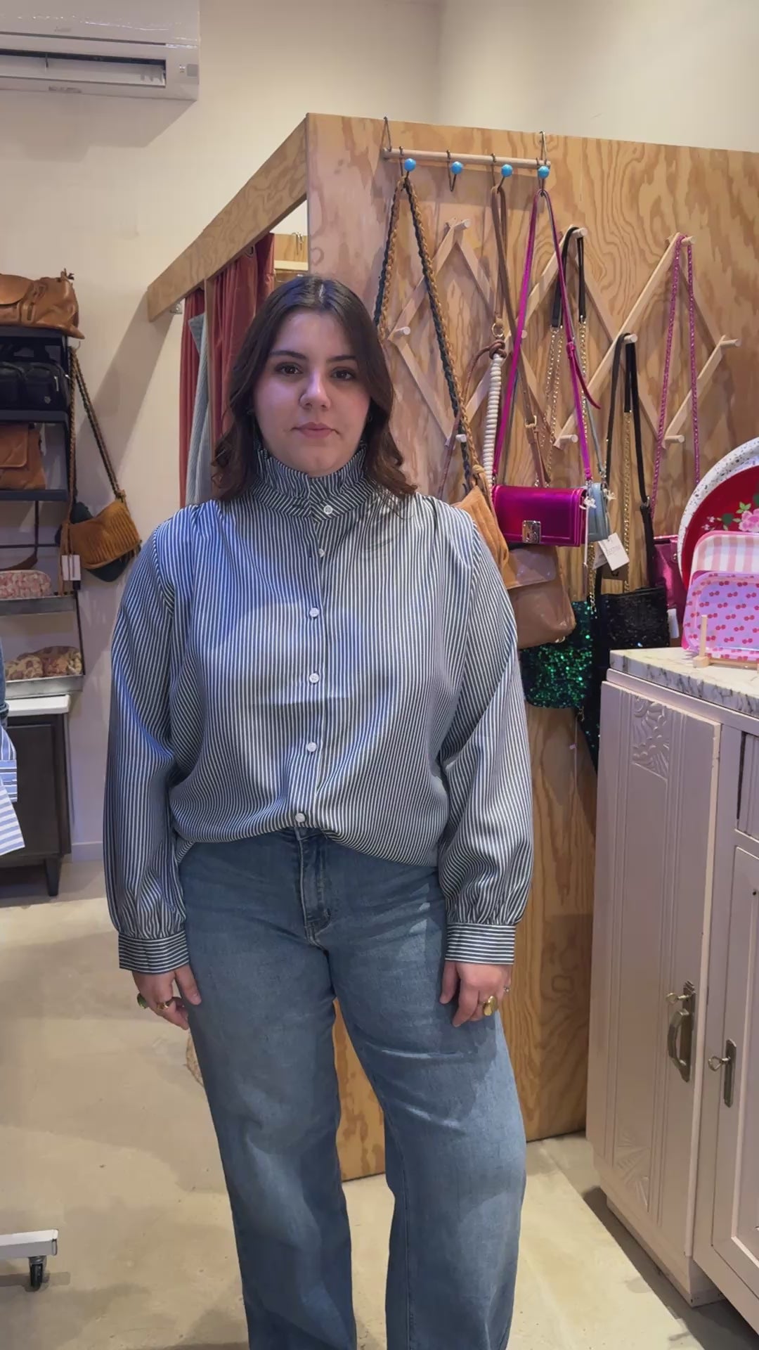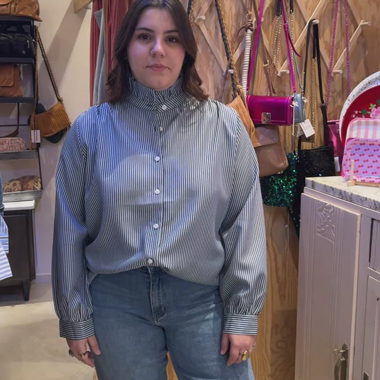 Un basic qu'on doit avoir dans son armoir, coupe un peu large et col montant à volant.