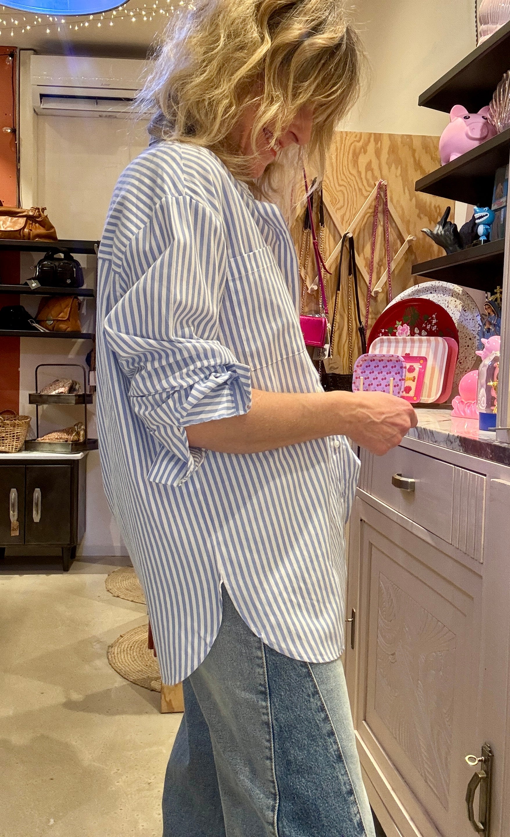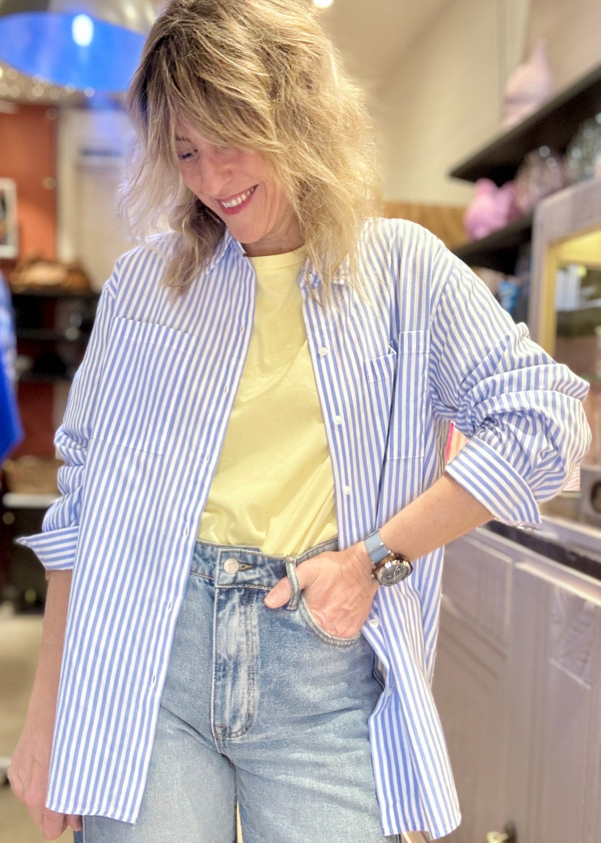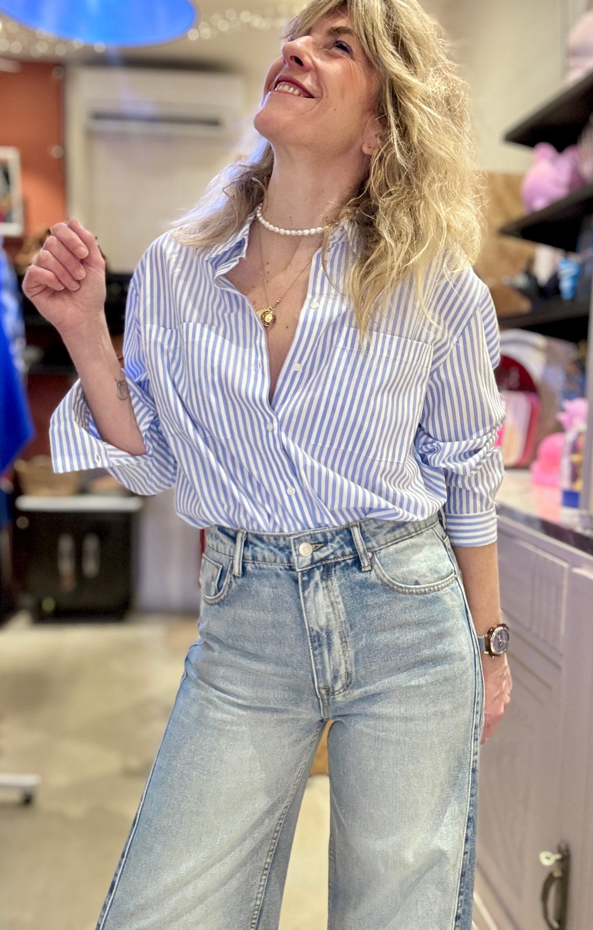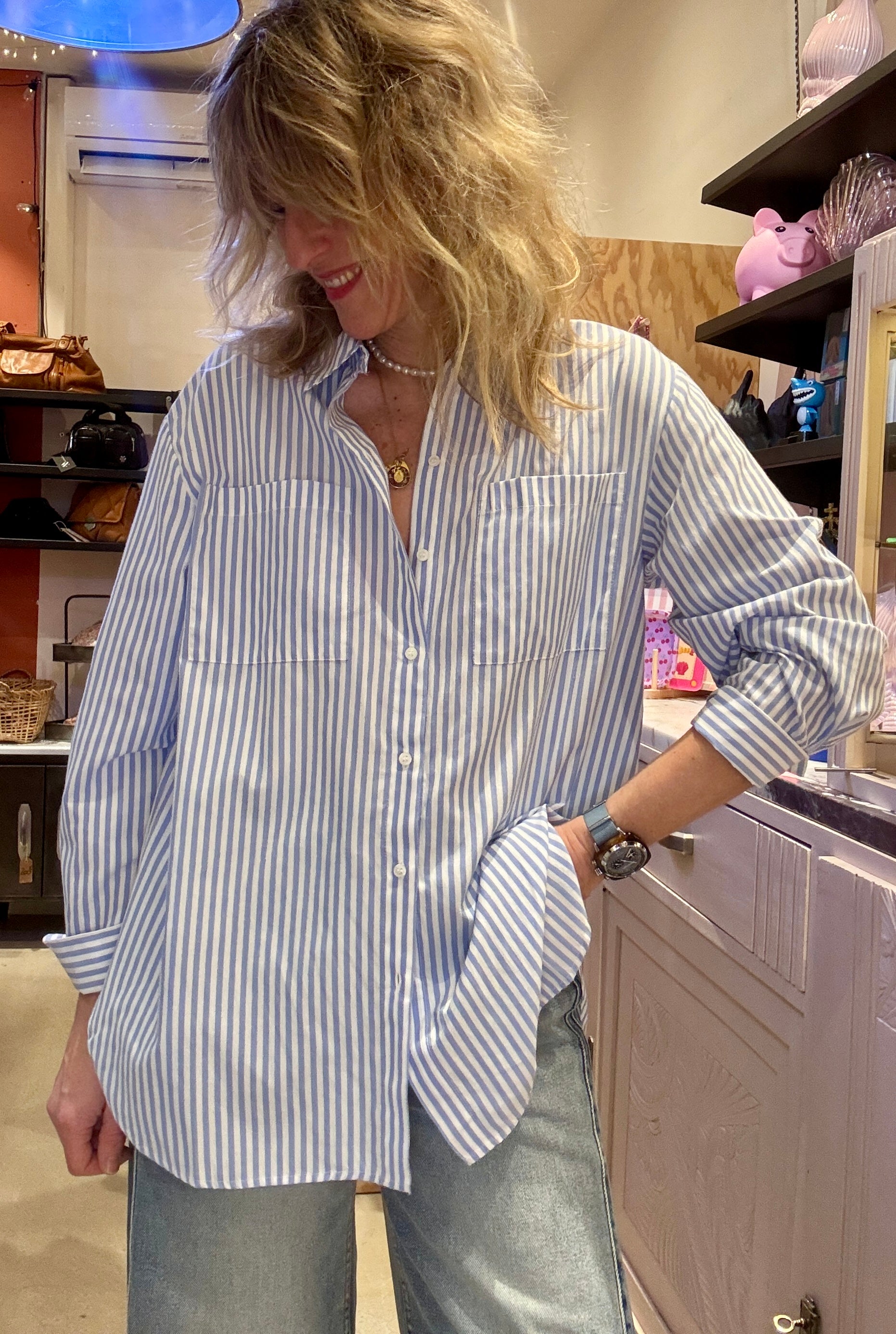 Chemise en coton blanc avec rayures bleues, j'adore !!
