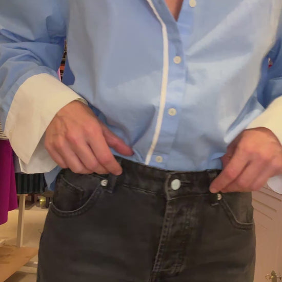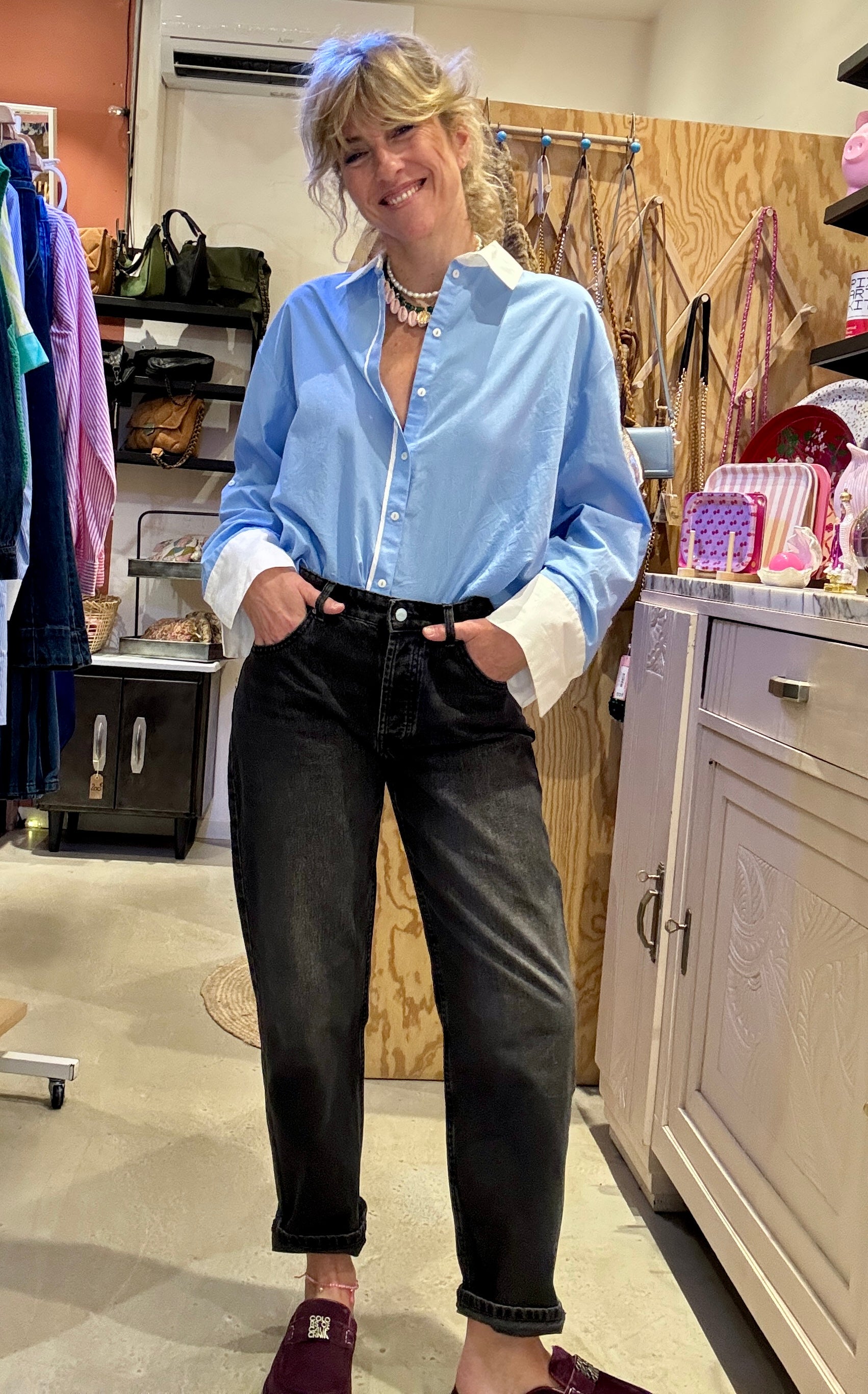 Taille semi haute, cuisses larges et resserré dans le bas.