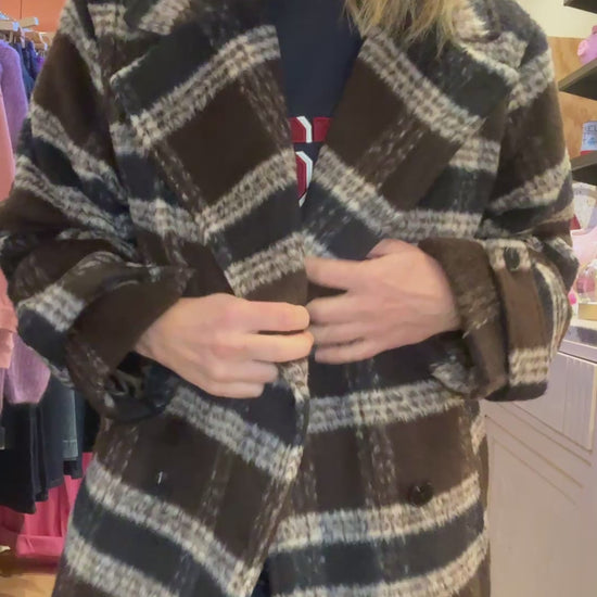 Magnifique manteau à carreaux choco/marine.