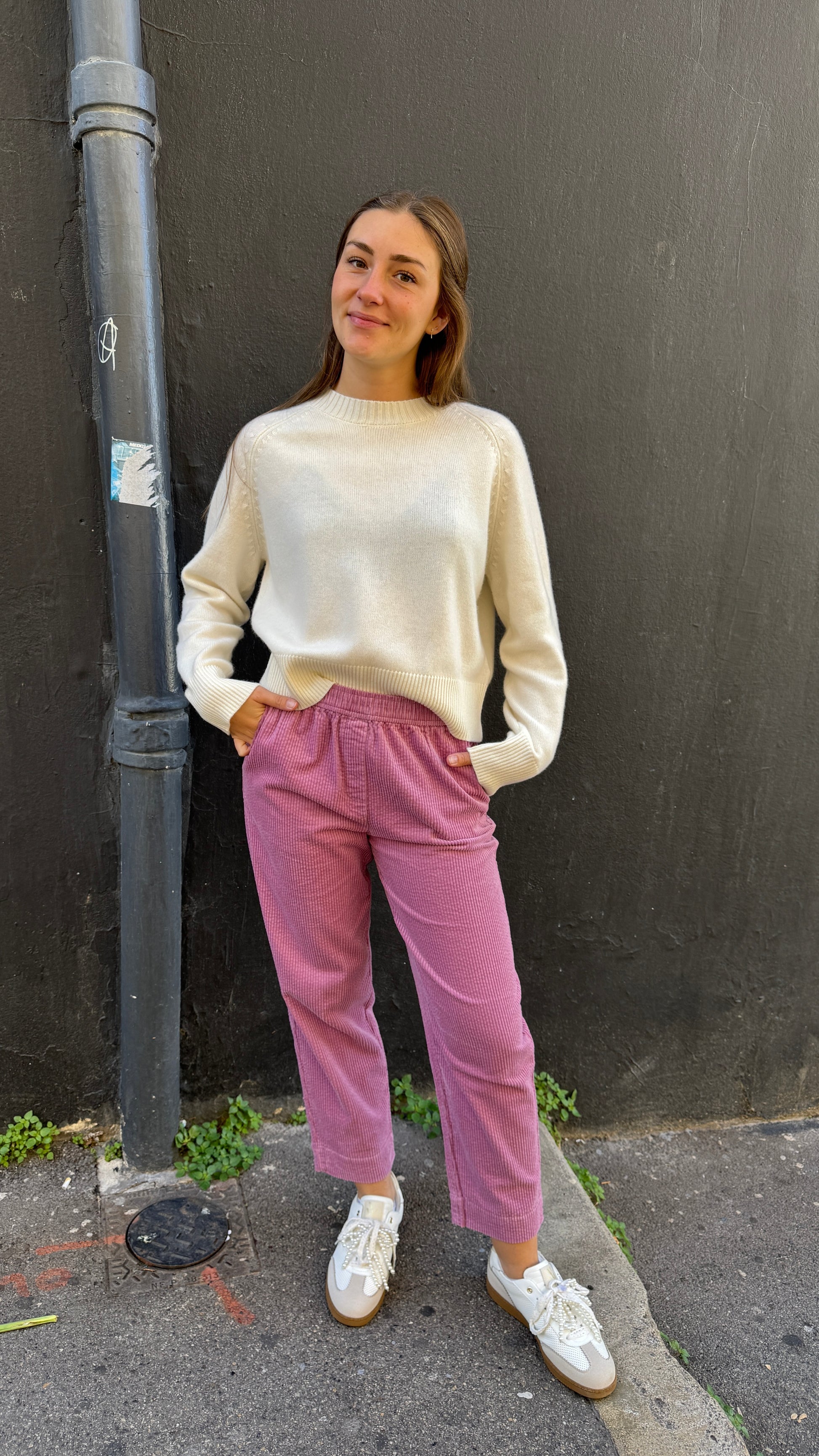 Coupe cuisse large resserré dans le bas pour un look dégaine, on adore le porter avec des tennis ou mocassins et version plus chic avec talons.