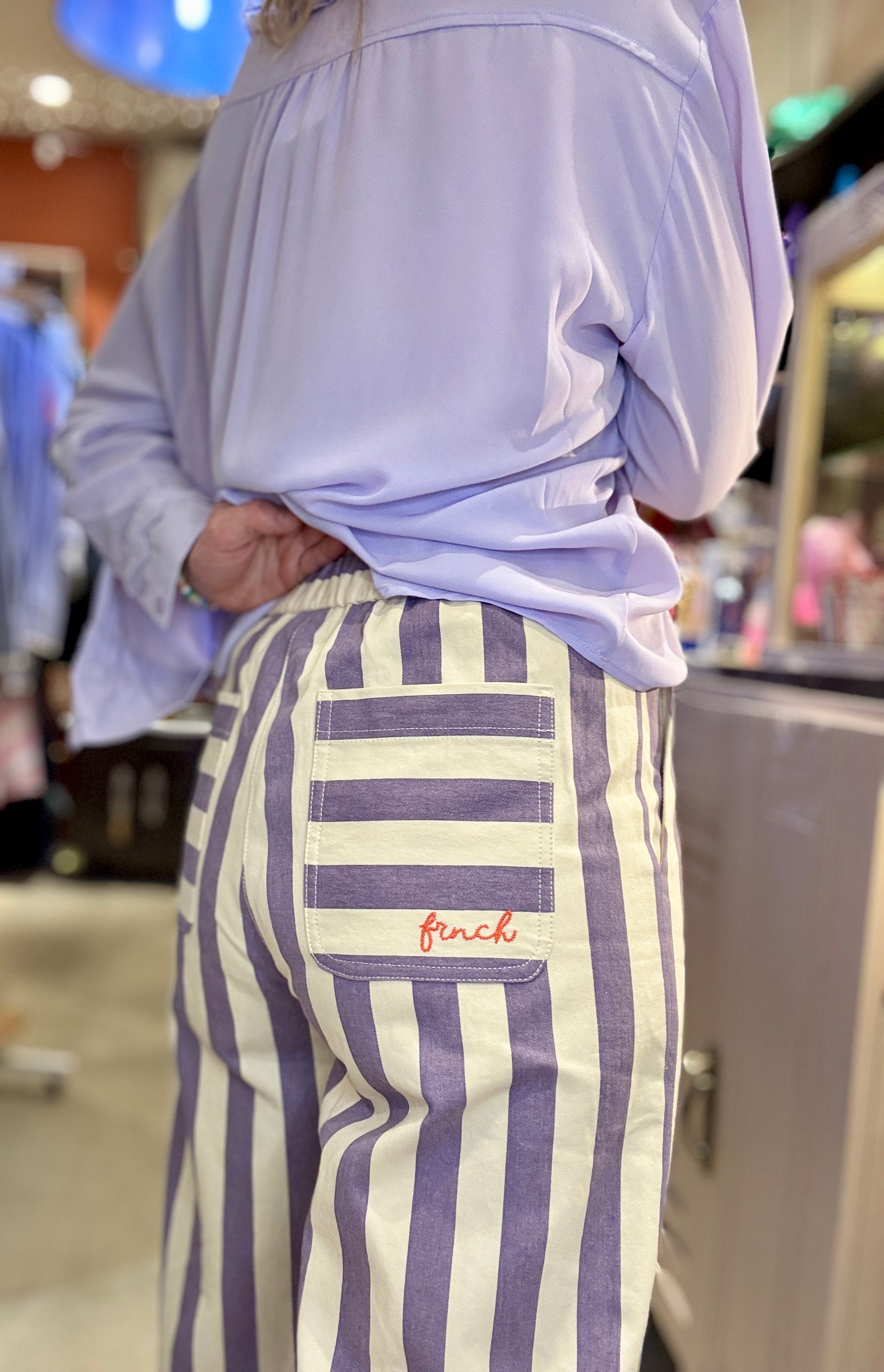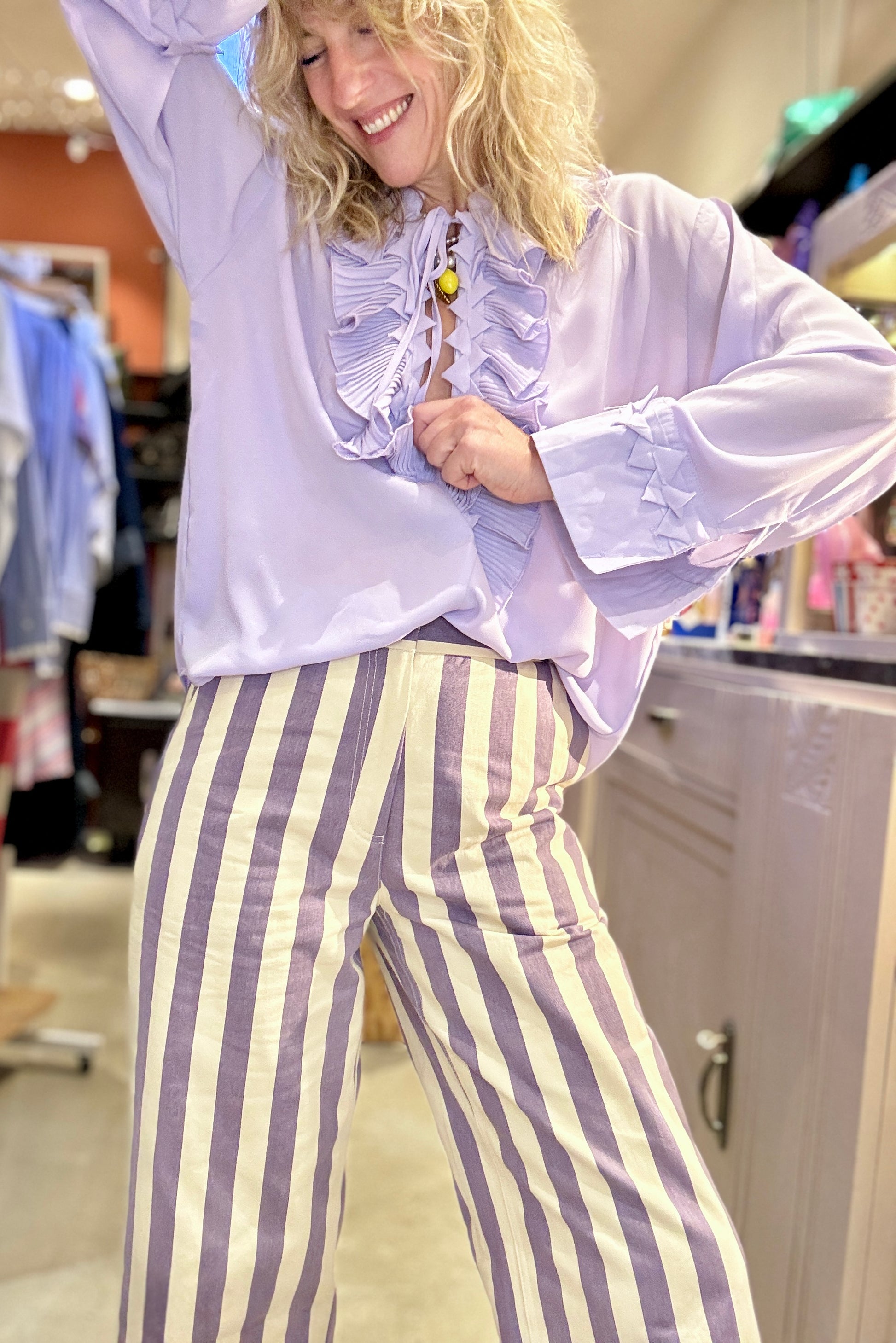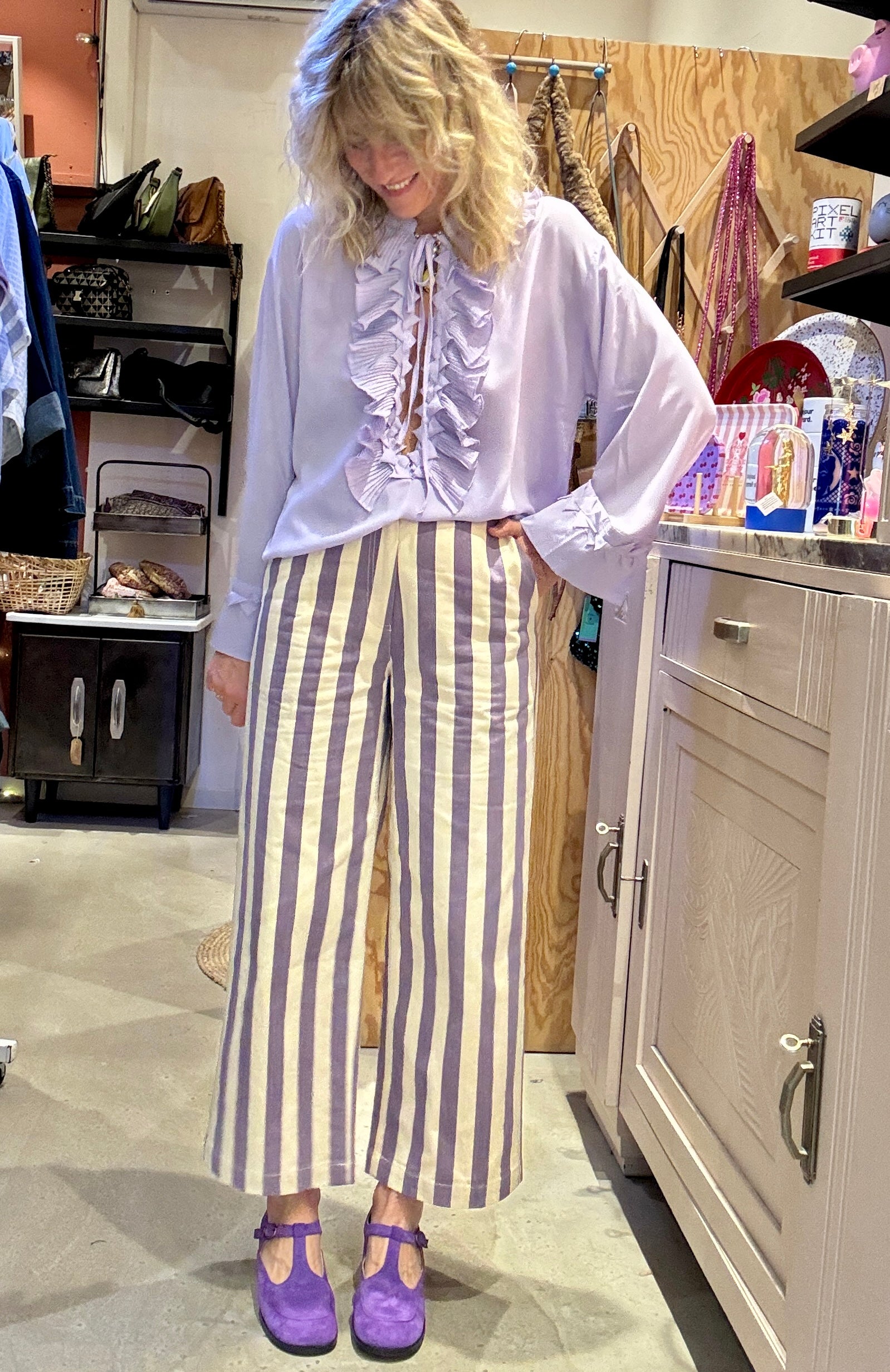 Mon Crush absolu !! Le pantalon à rayures mauves et écrues.