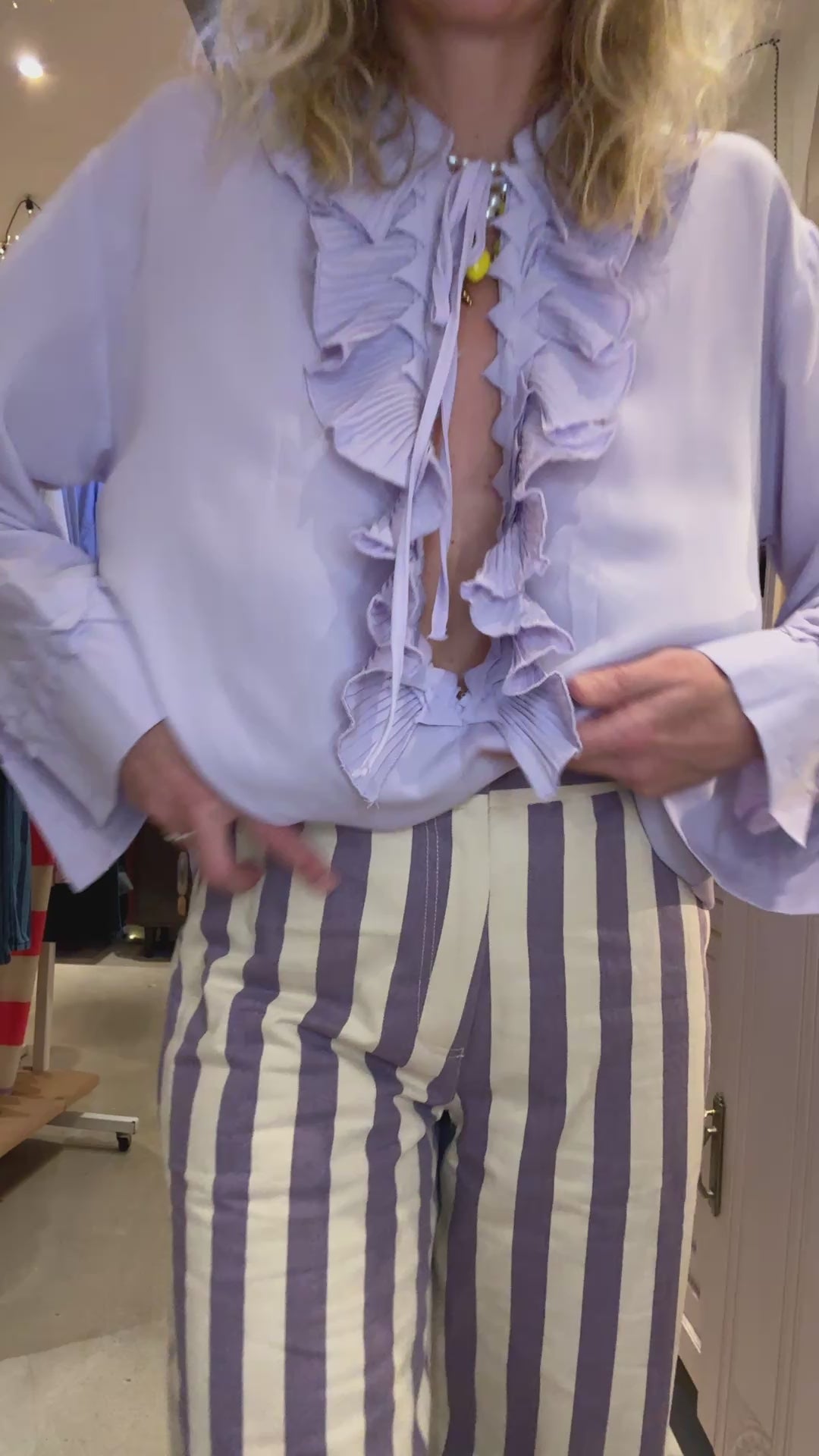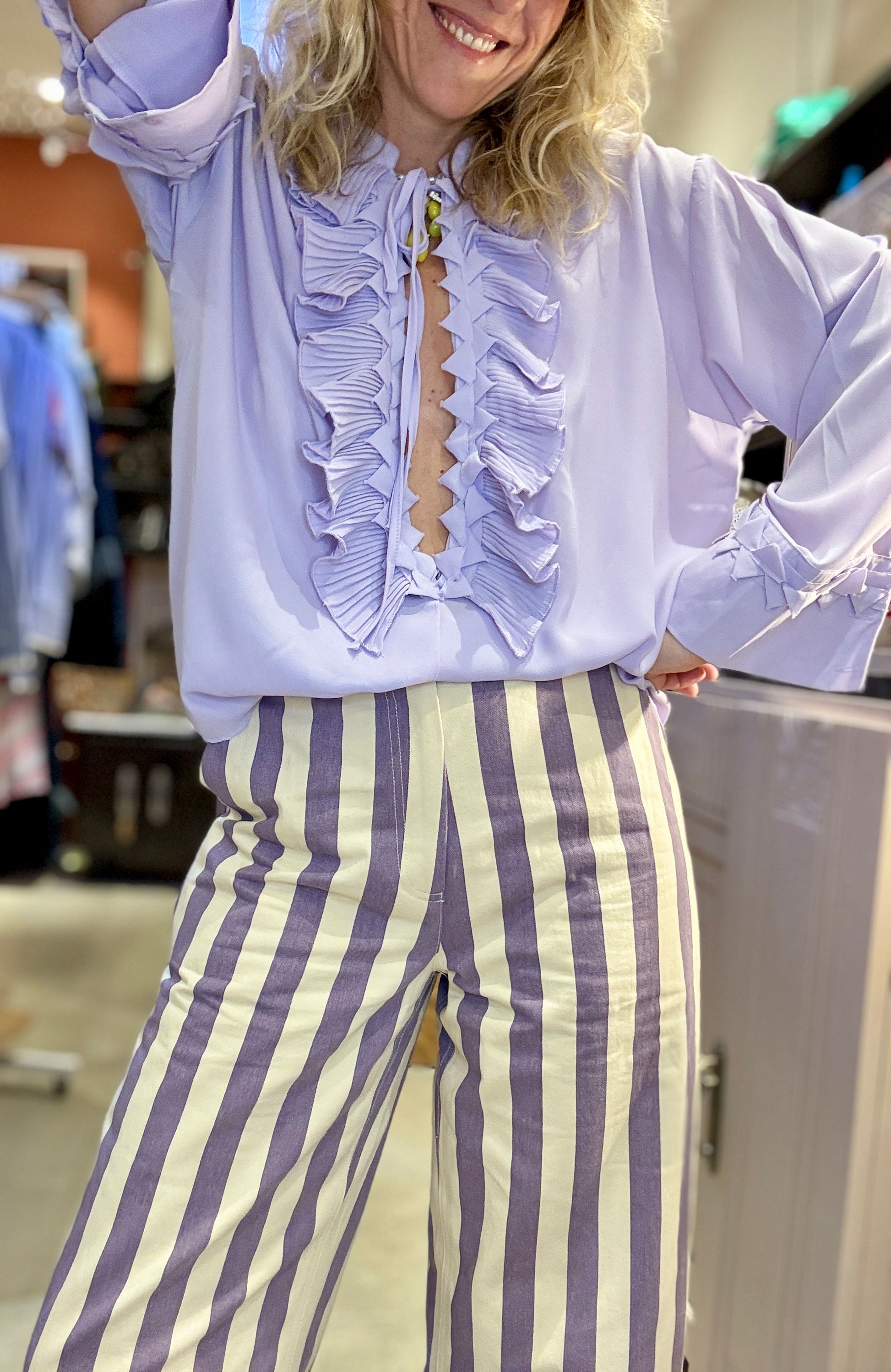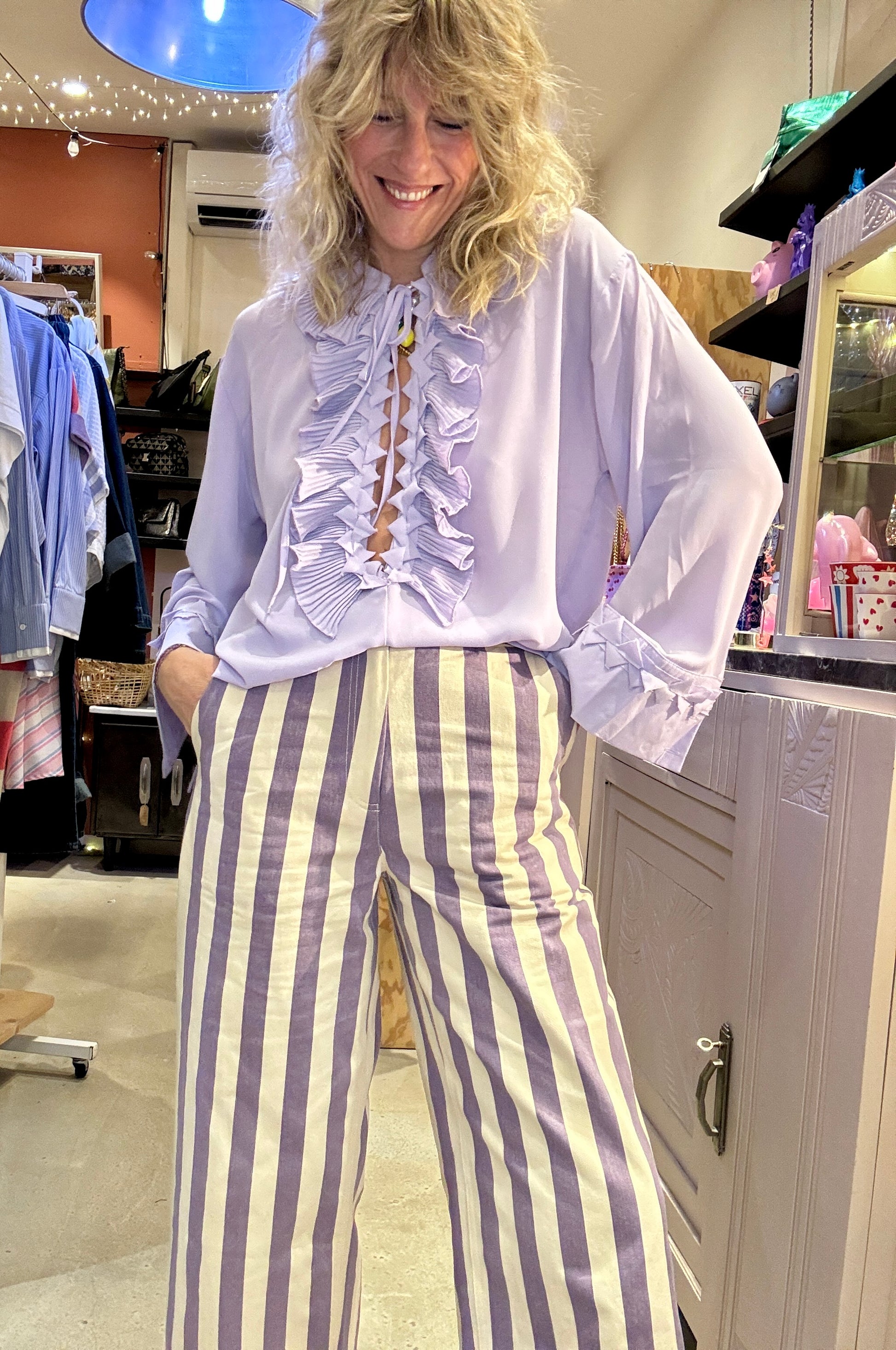 Mon Crush absolu !! Le pantalon à rayures mauves et écrues.