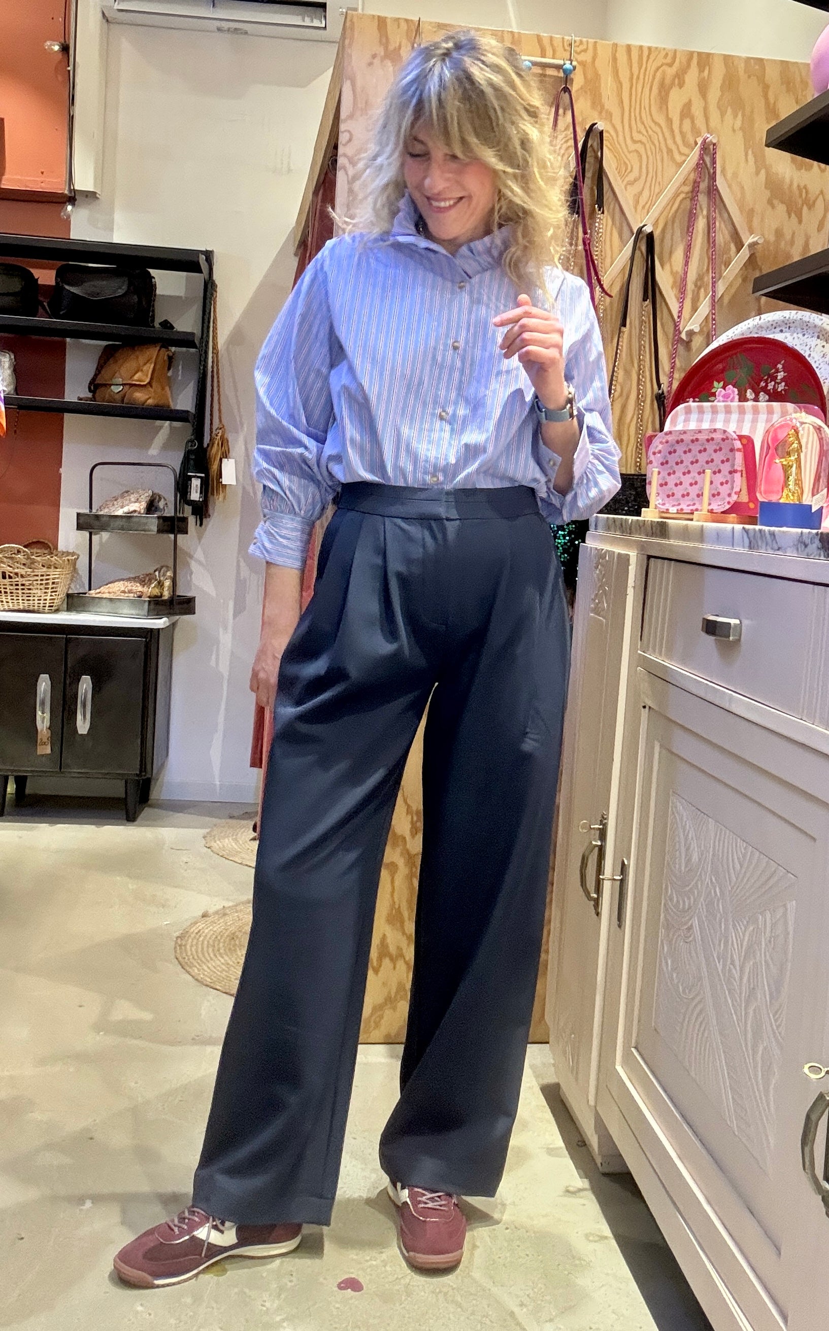 Pantalon canon, sa coupe large et dégaine à porter avec la veste Navy pour un look working girl moderne on adore !