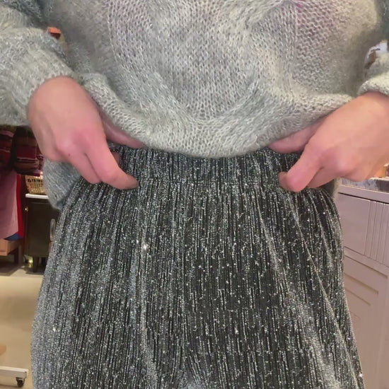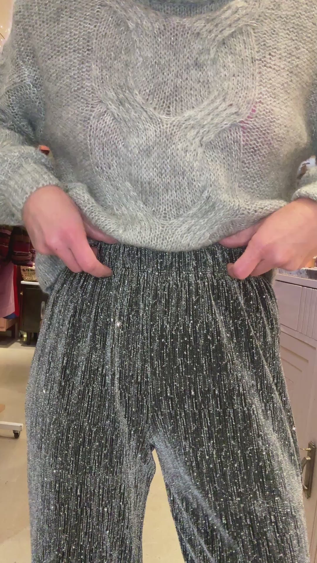 Canon ce pantalon ultra confort en tissus brillant argenté.