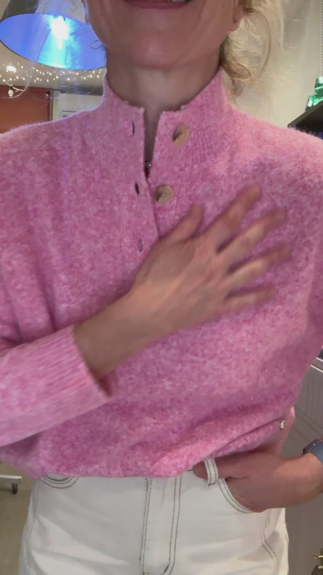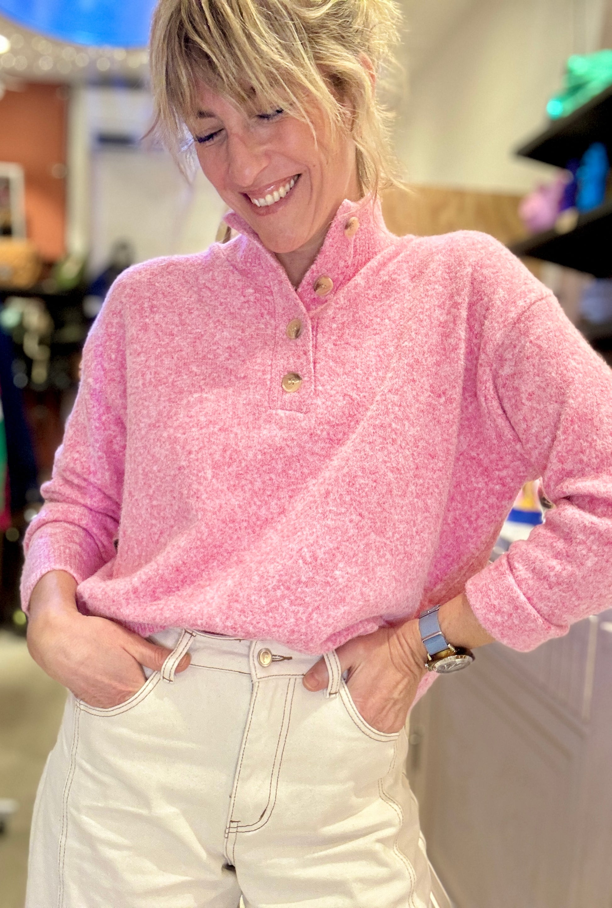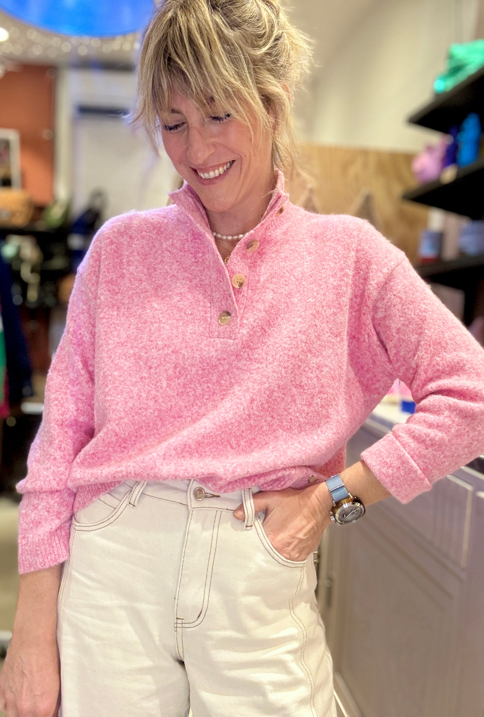Pull canon avec son col cheminé ouvert avec boutons.