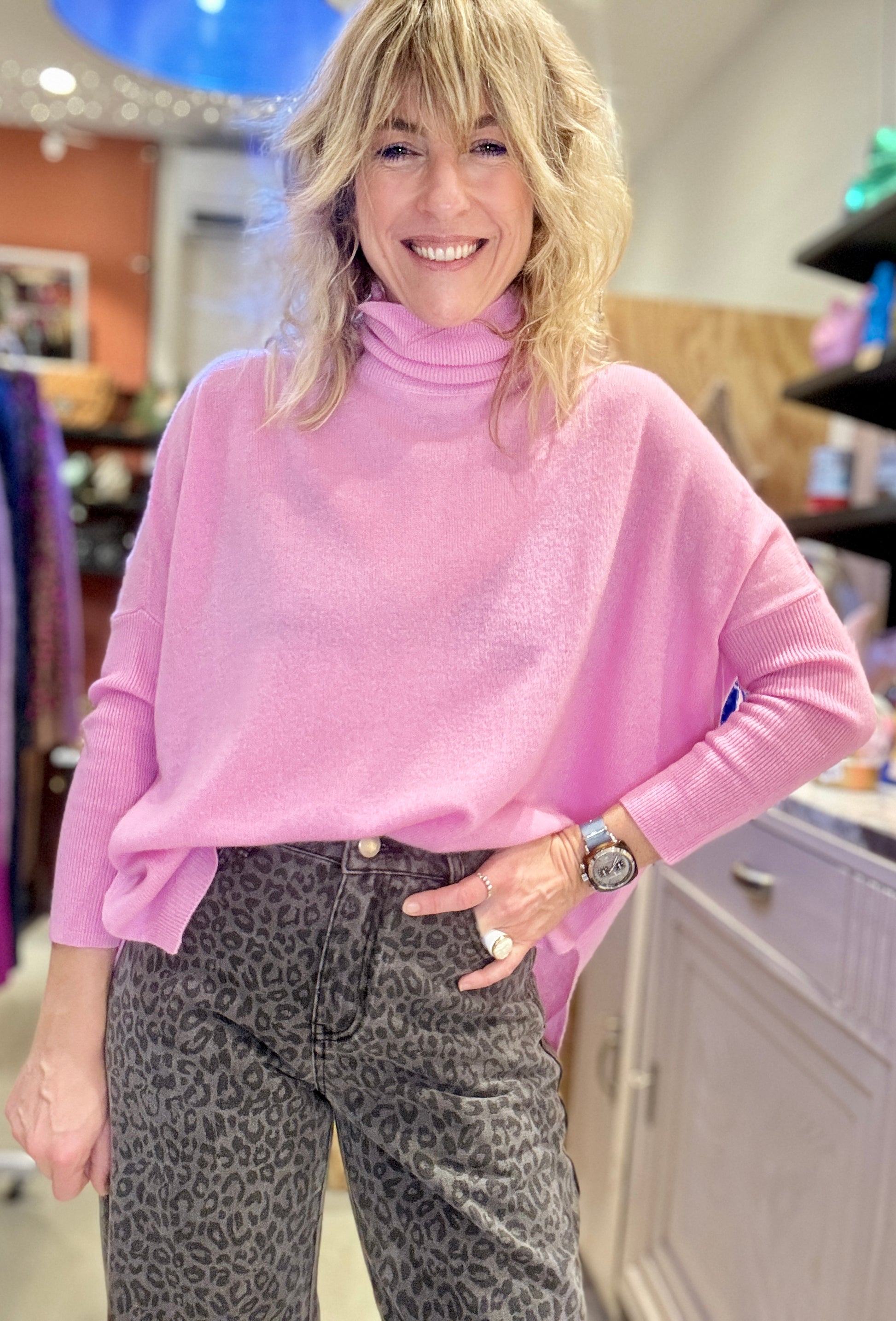 Pull Malène col roulé rose