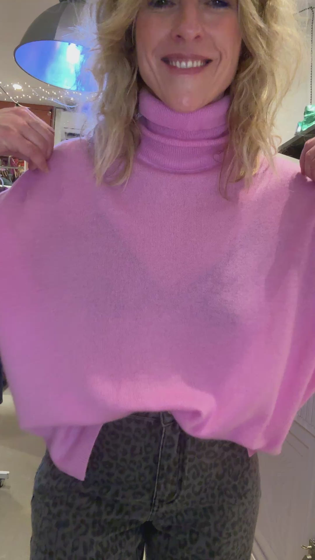 Coupe ample, emmanchures tombantes et col roulé.