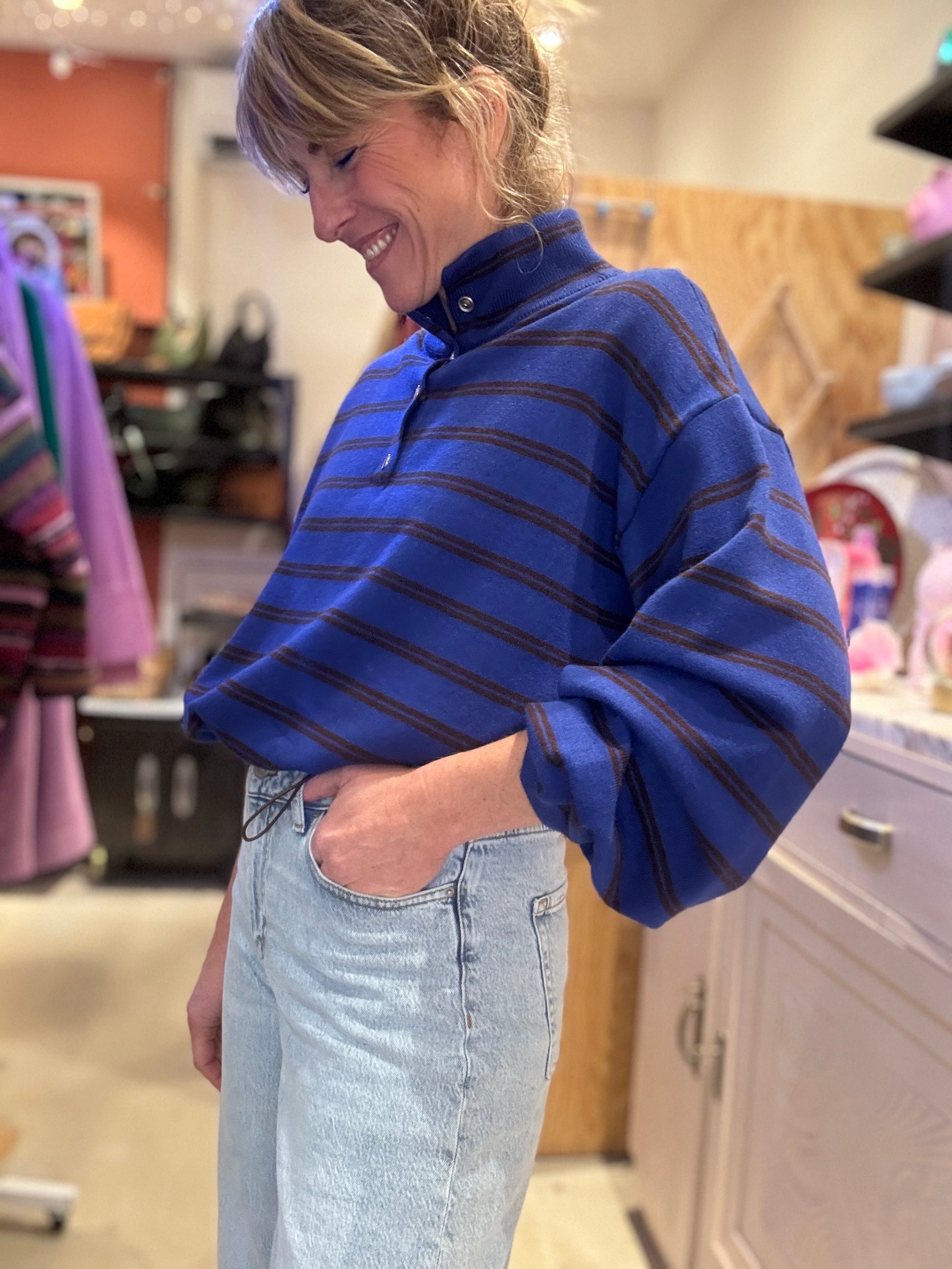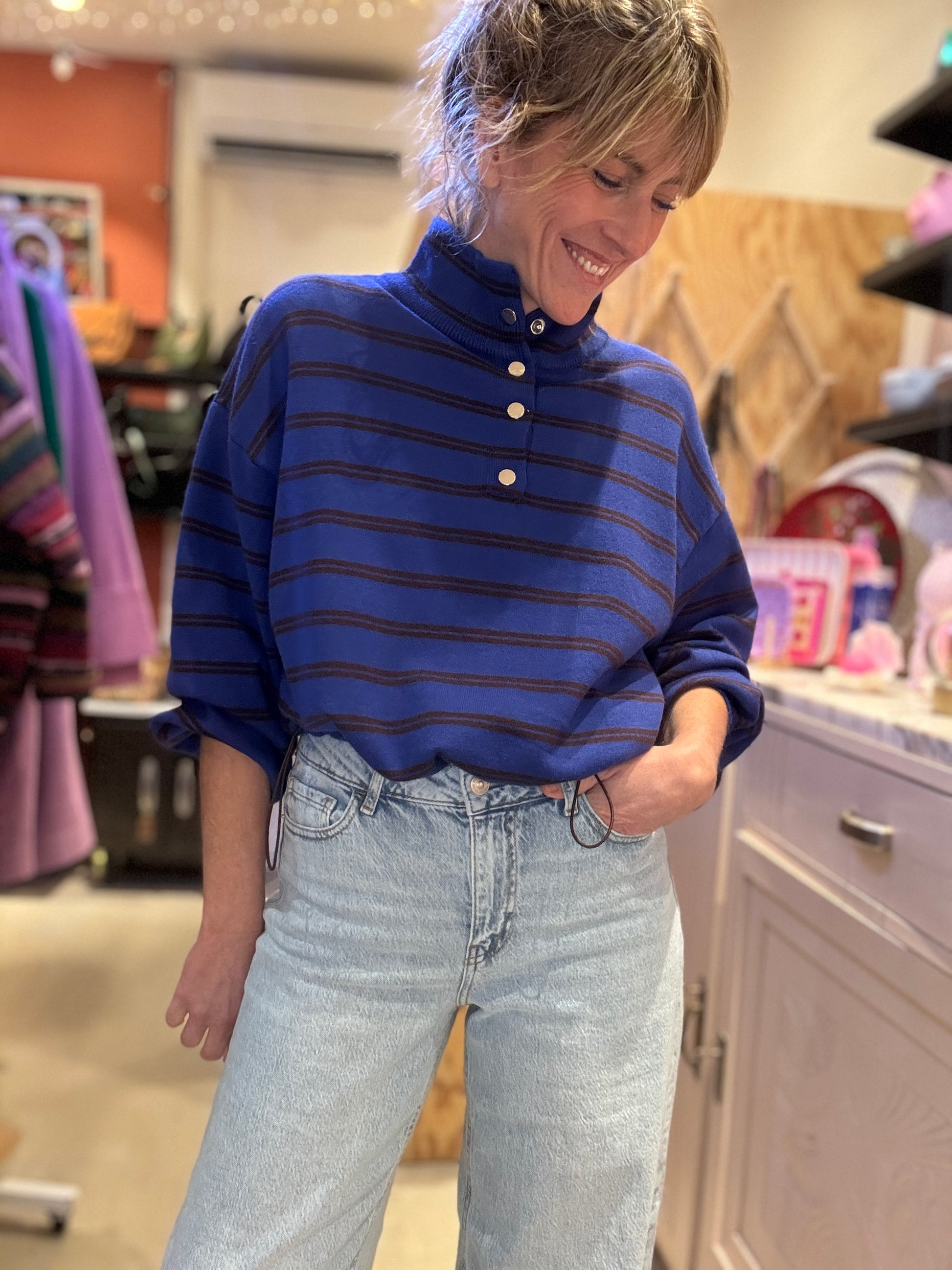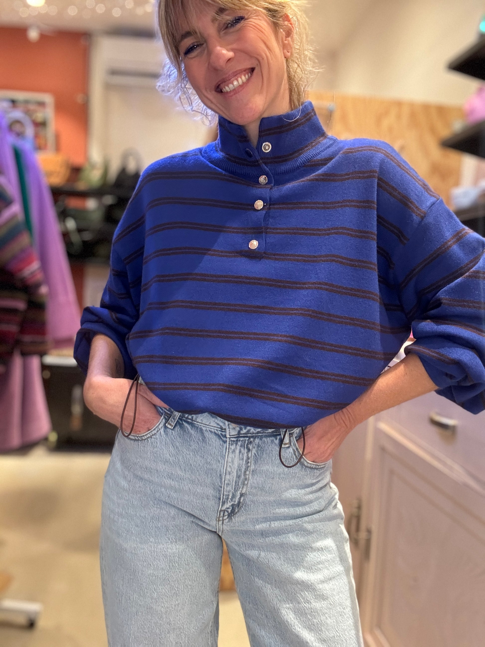 J'adore ce pull ! bleu eu choco !