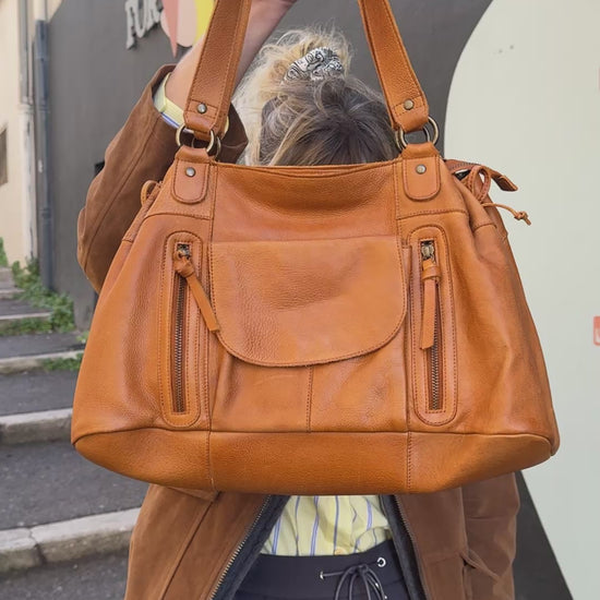 2 anses porté épaules, fermeture par zip, deux poches sans zip et une poche zip.