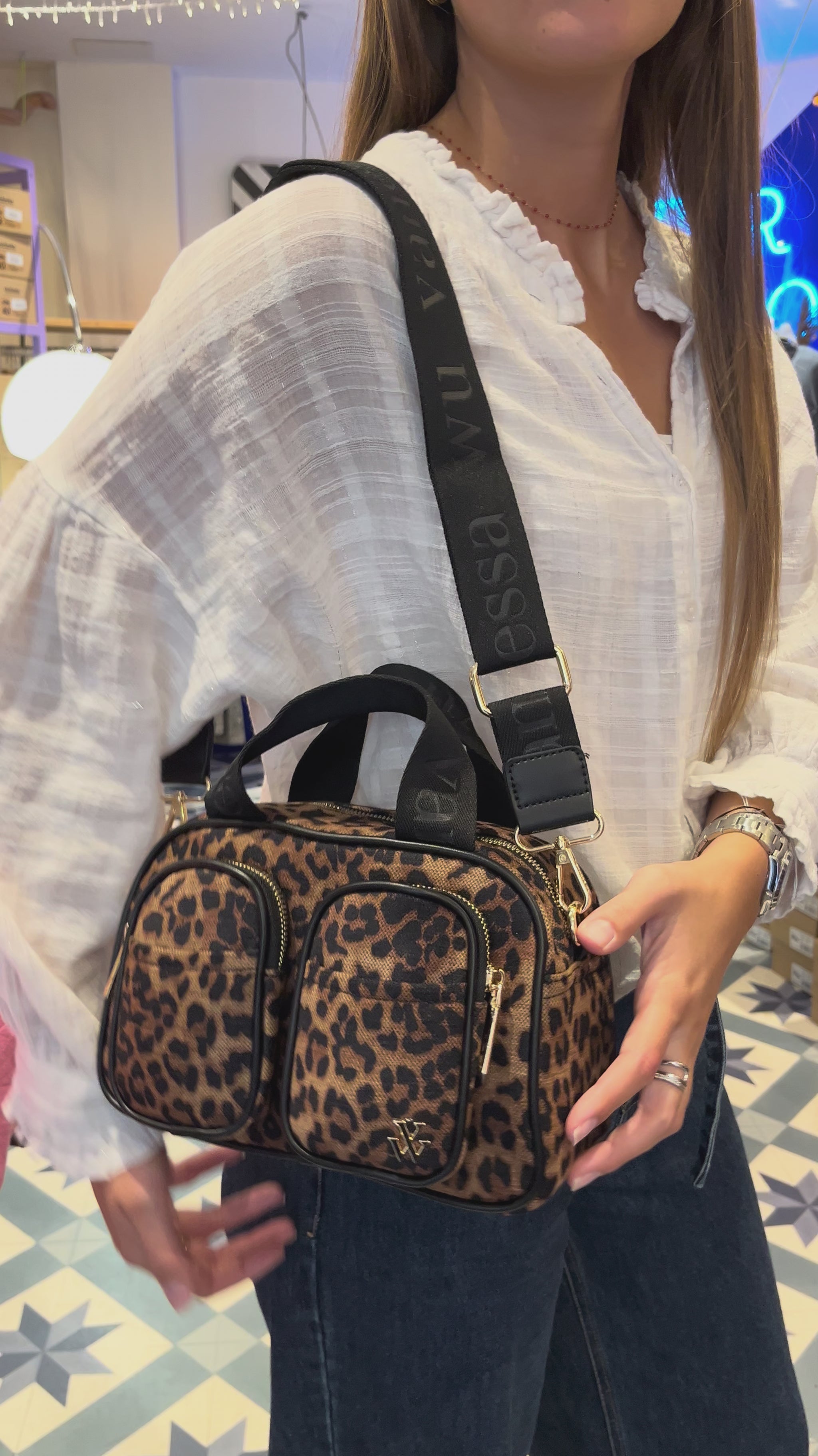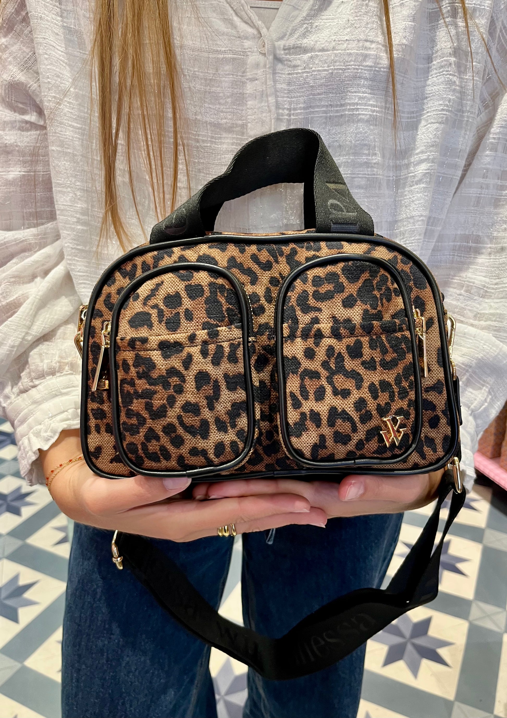 - Fond de sac en tweed imprimé léopard