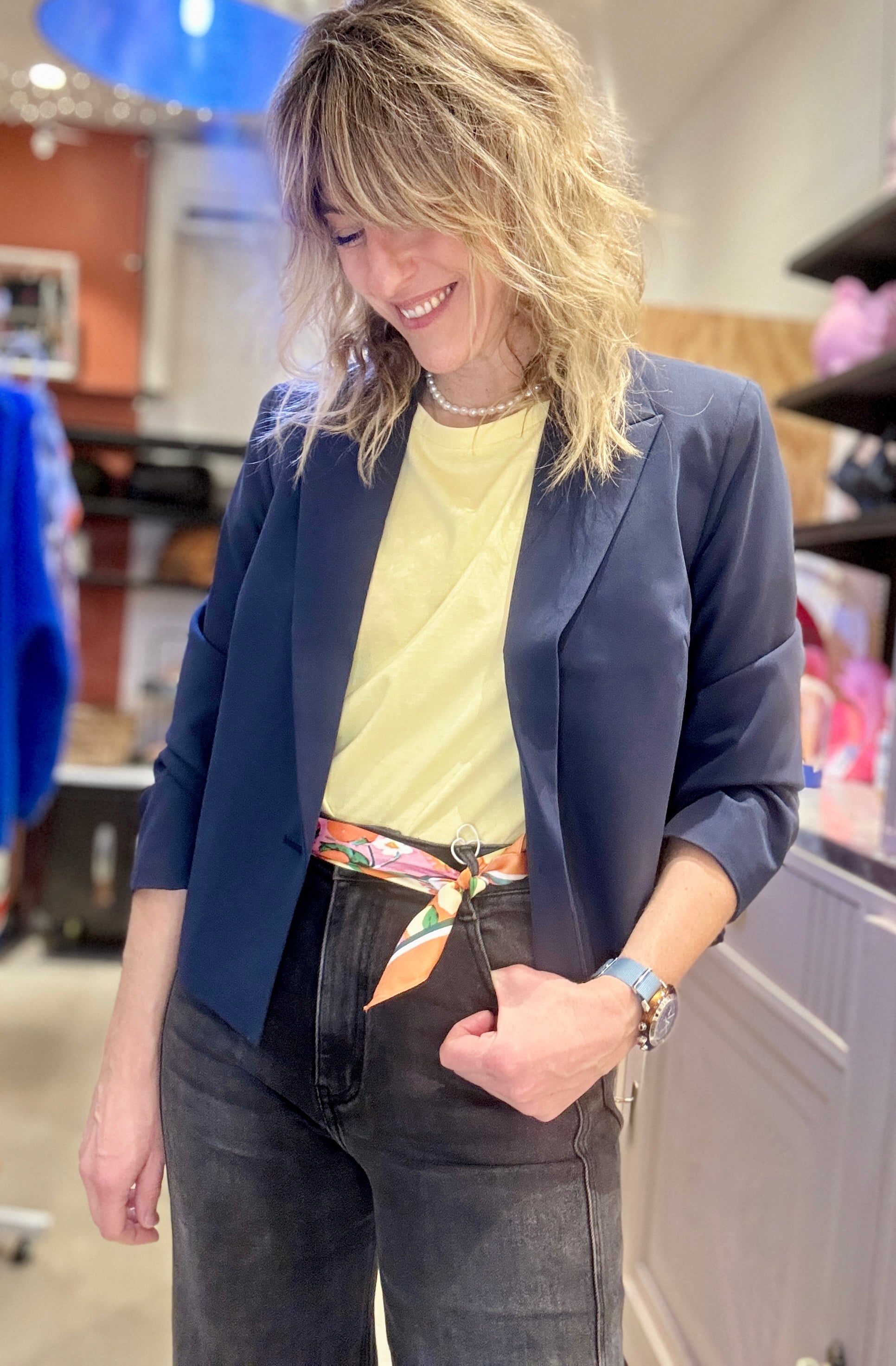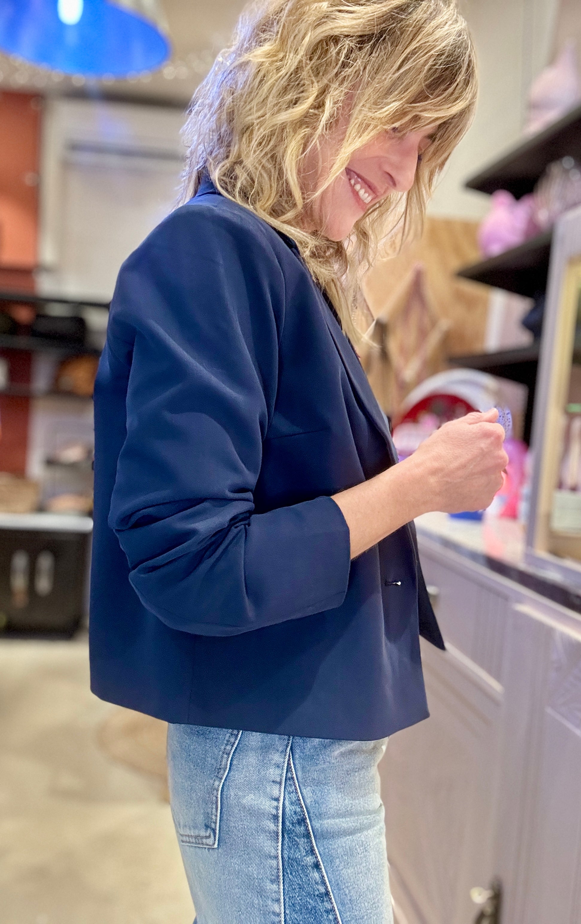Magnifique spencer marine, on adore porté avec un jean ou en total look avec le pantalon Navy pour un look working girl canon !