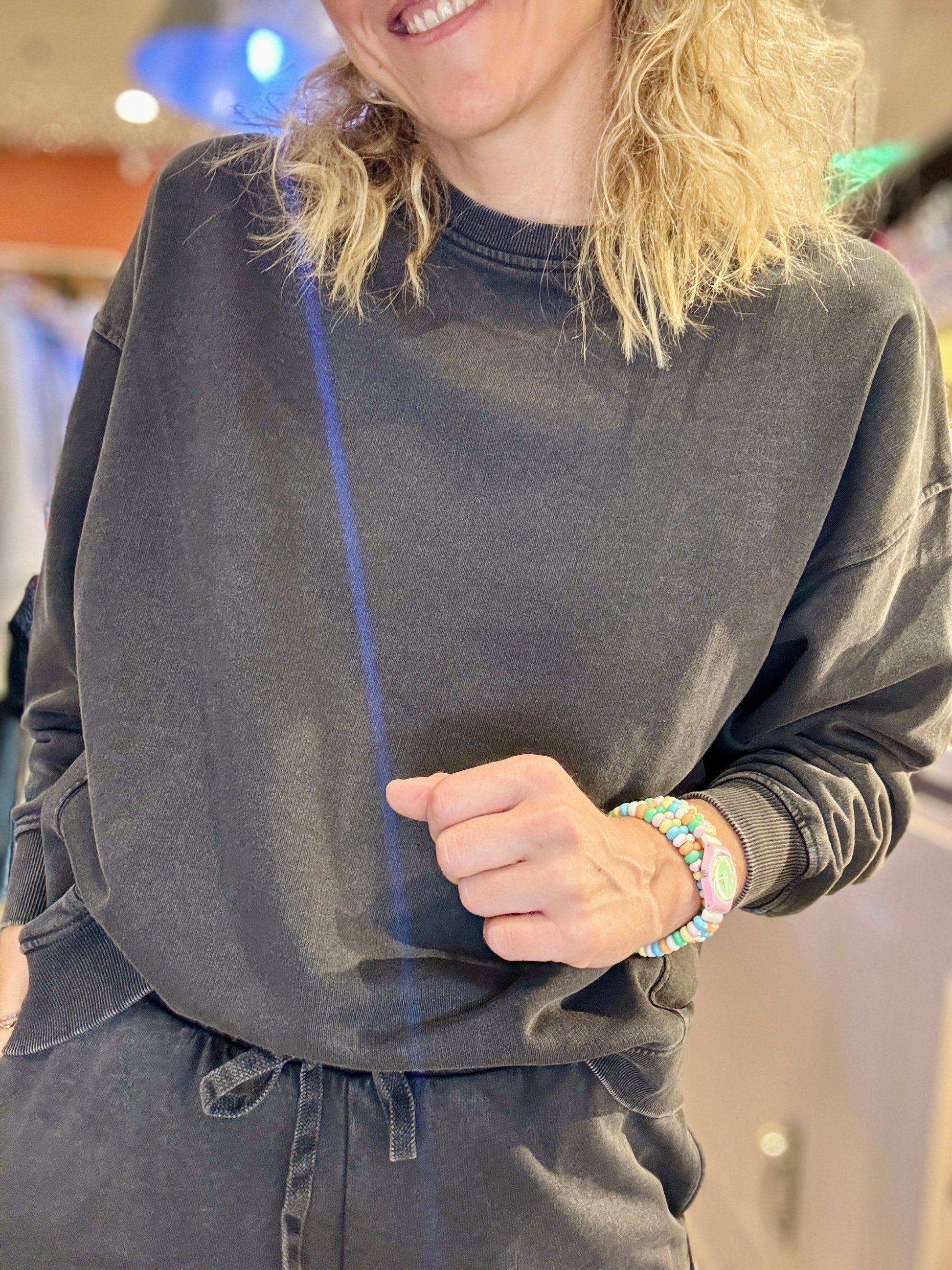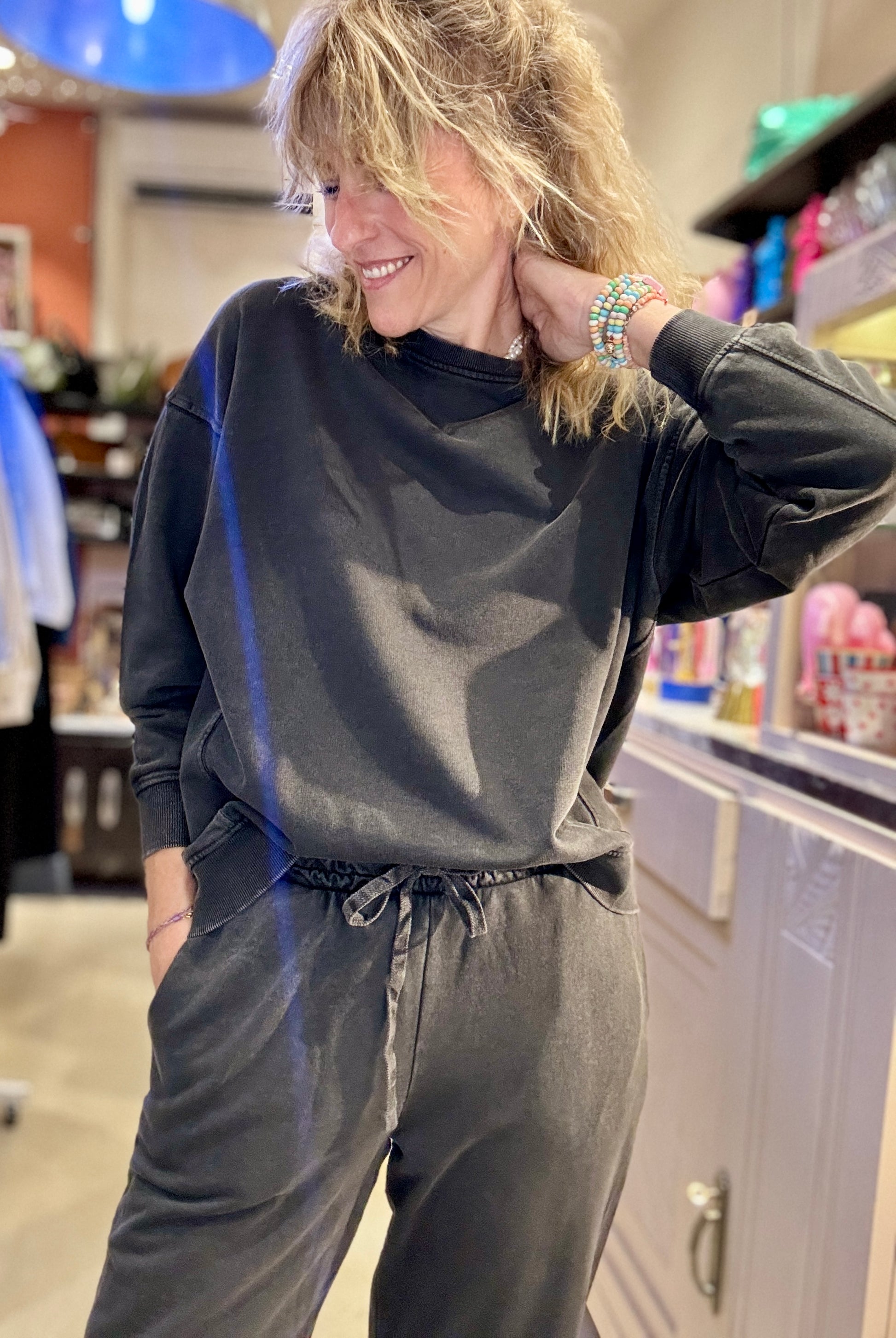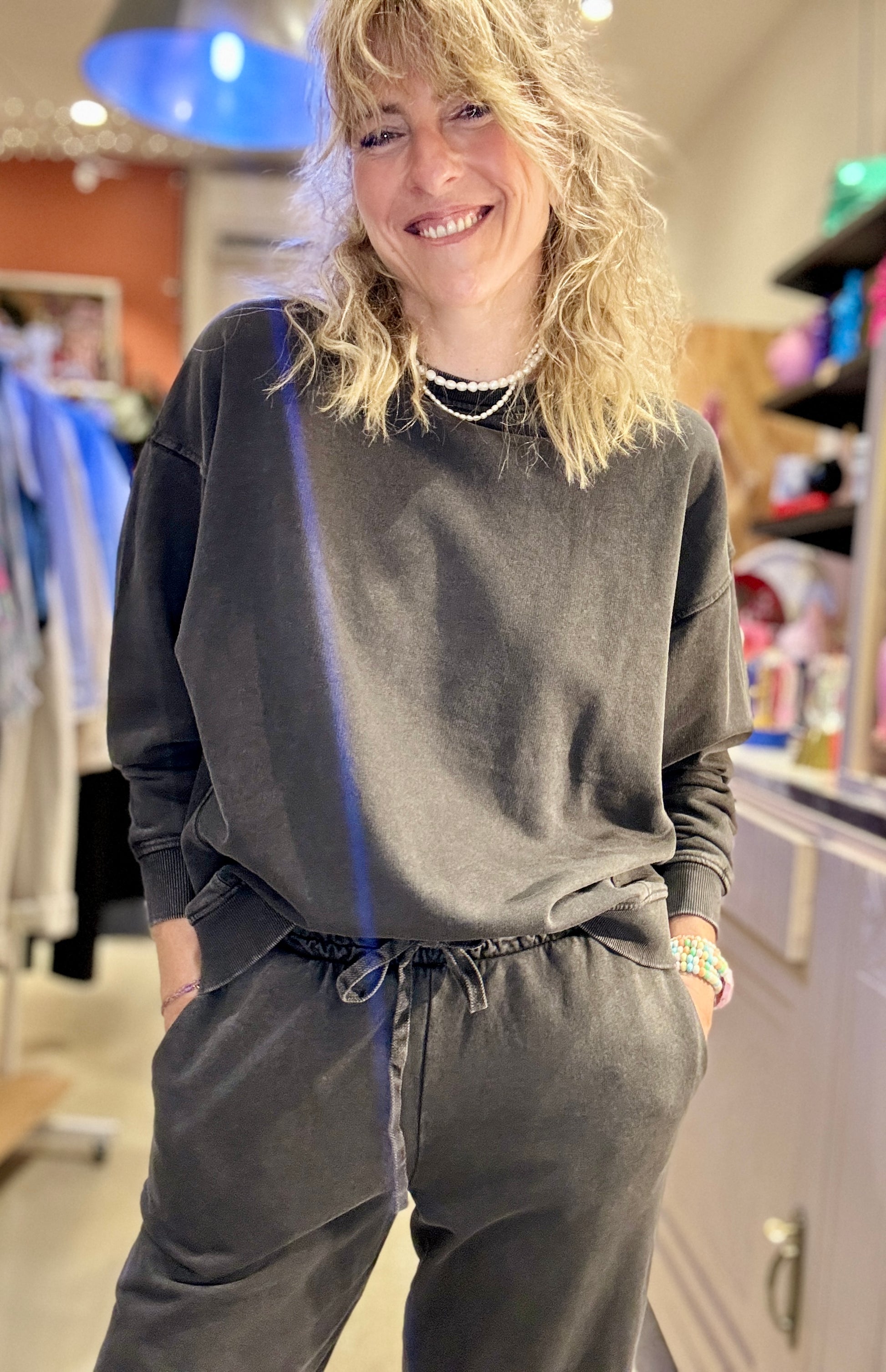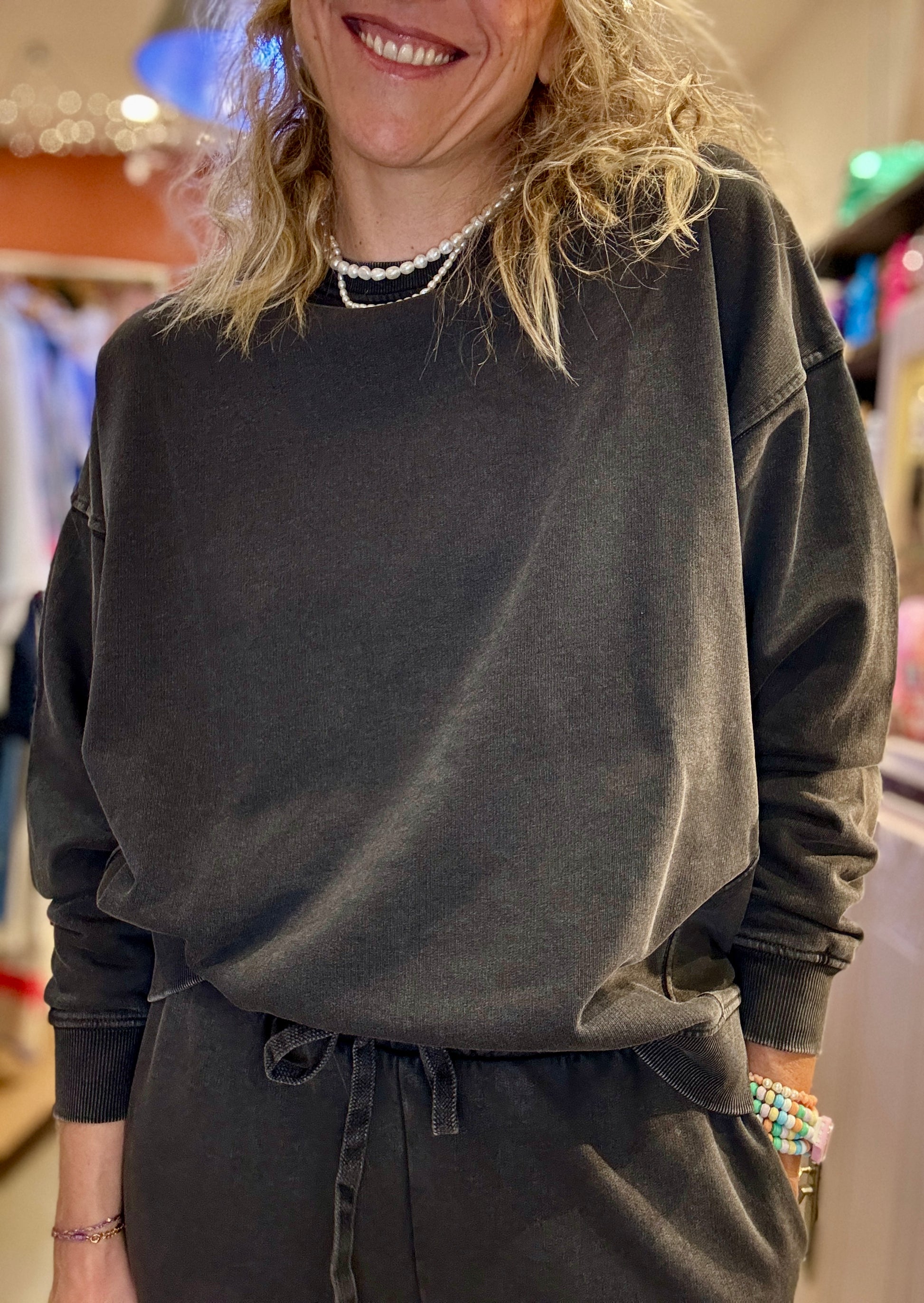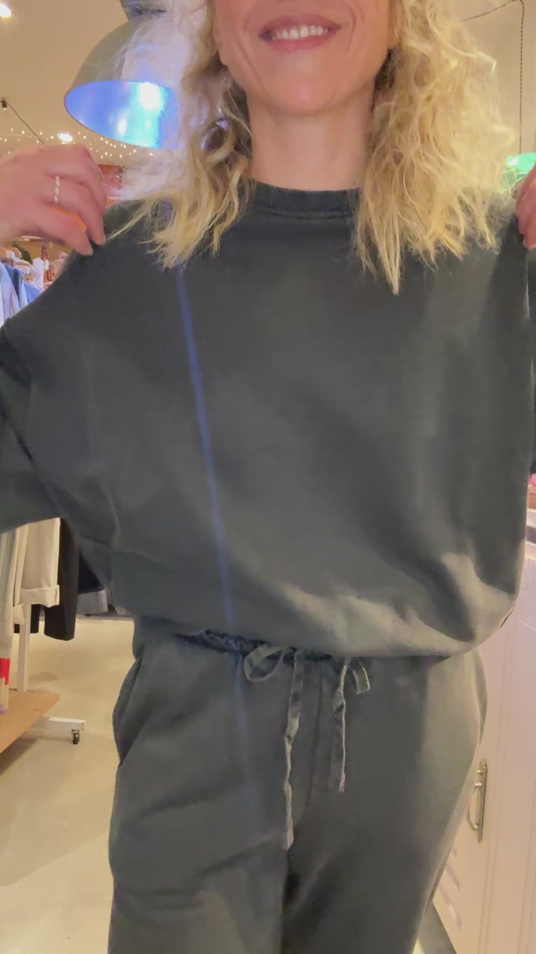 Coupe ample, emmanchures tombantes et aspect vieilli gris délavé.