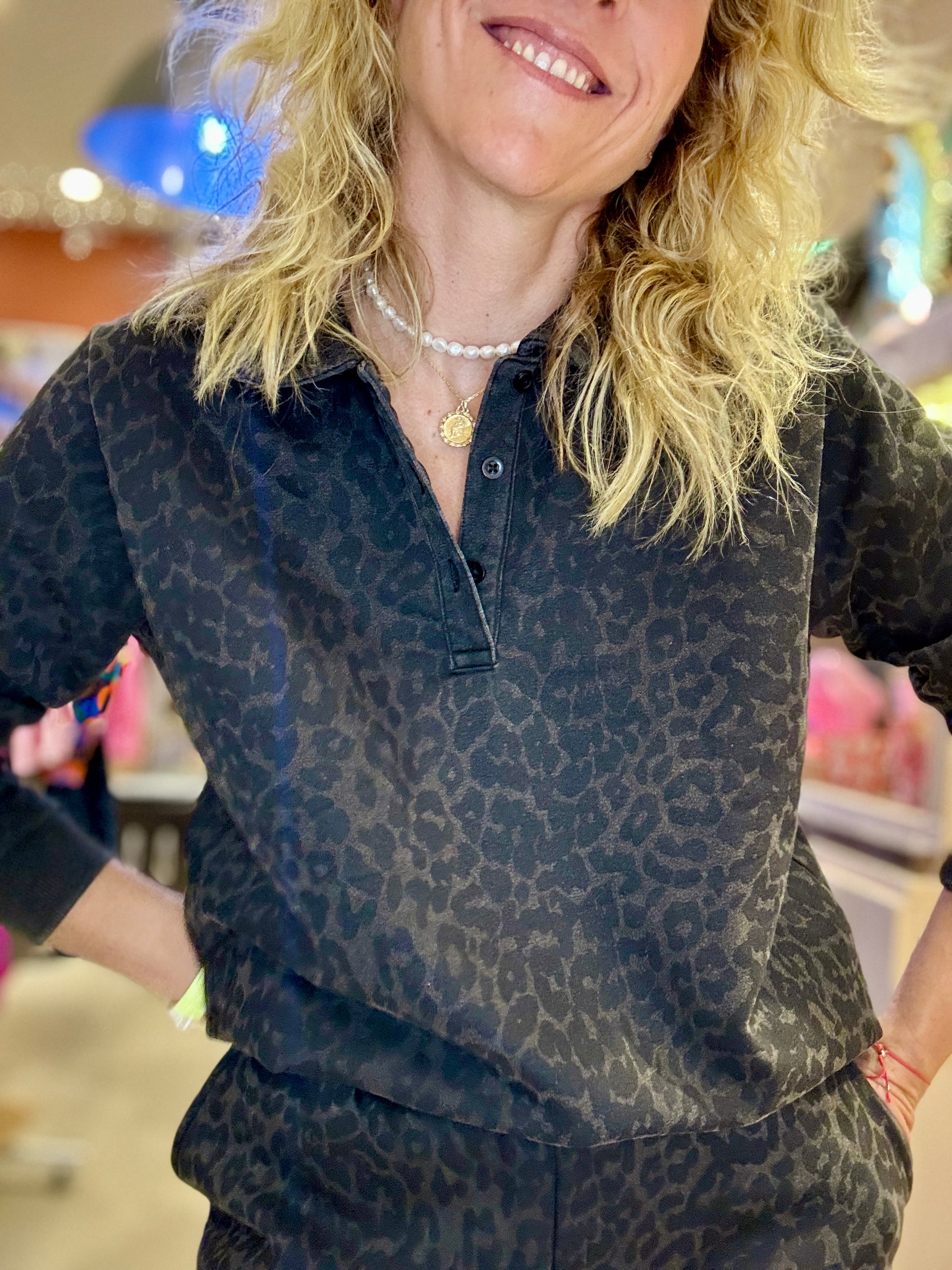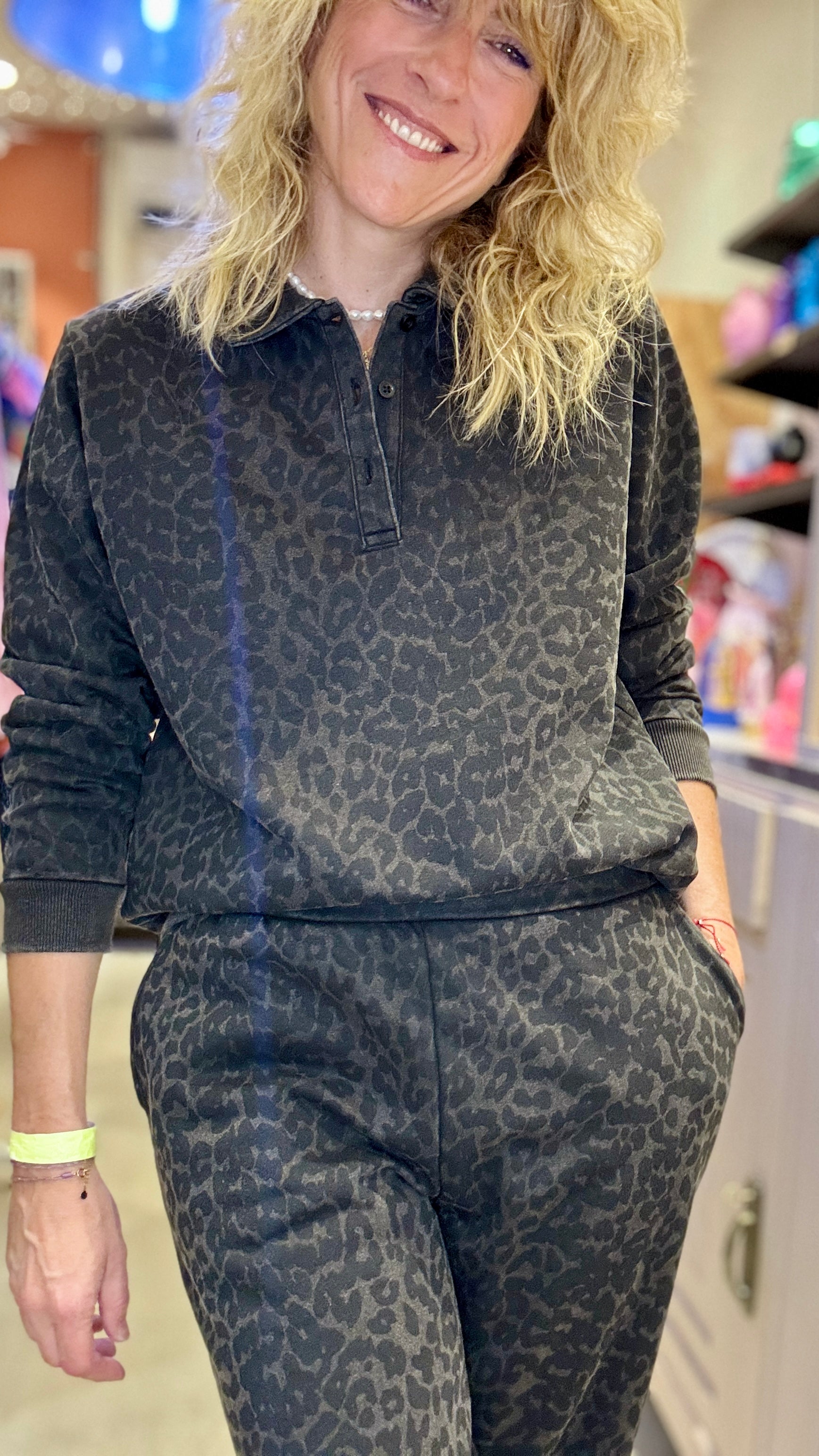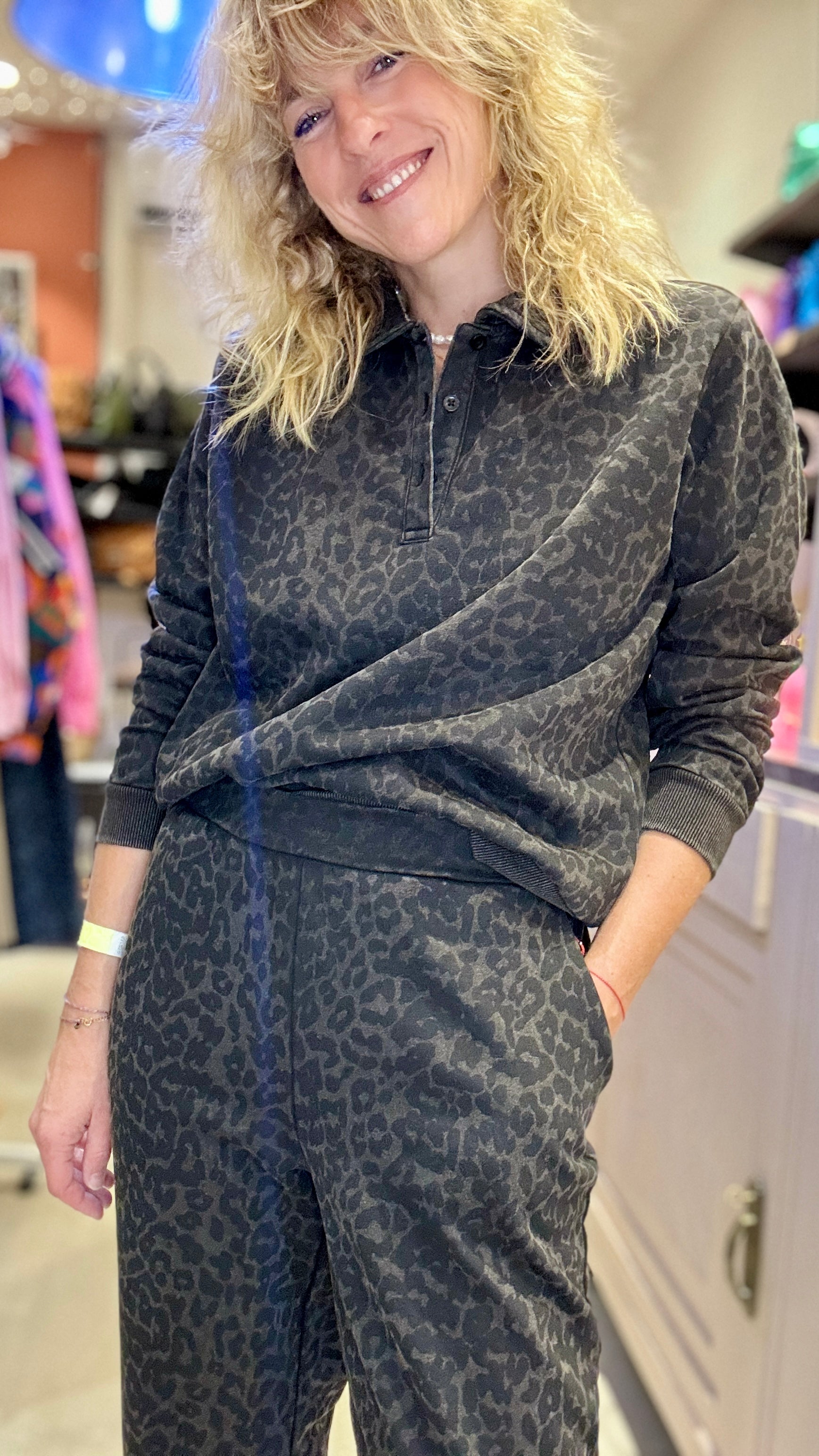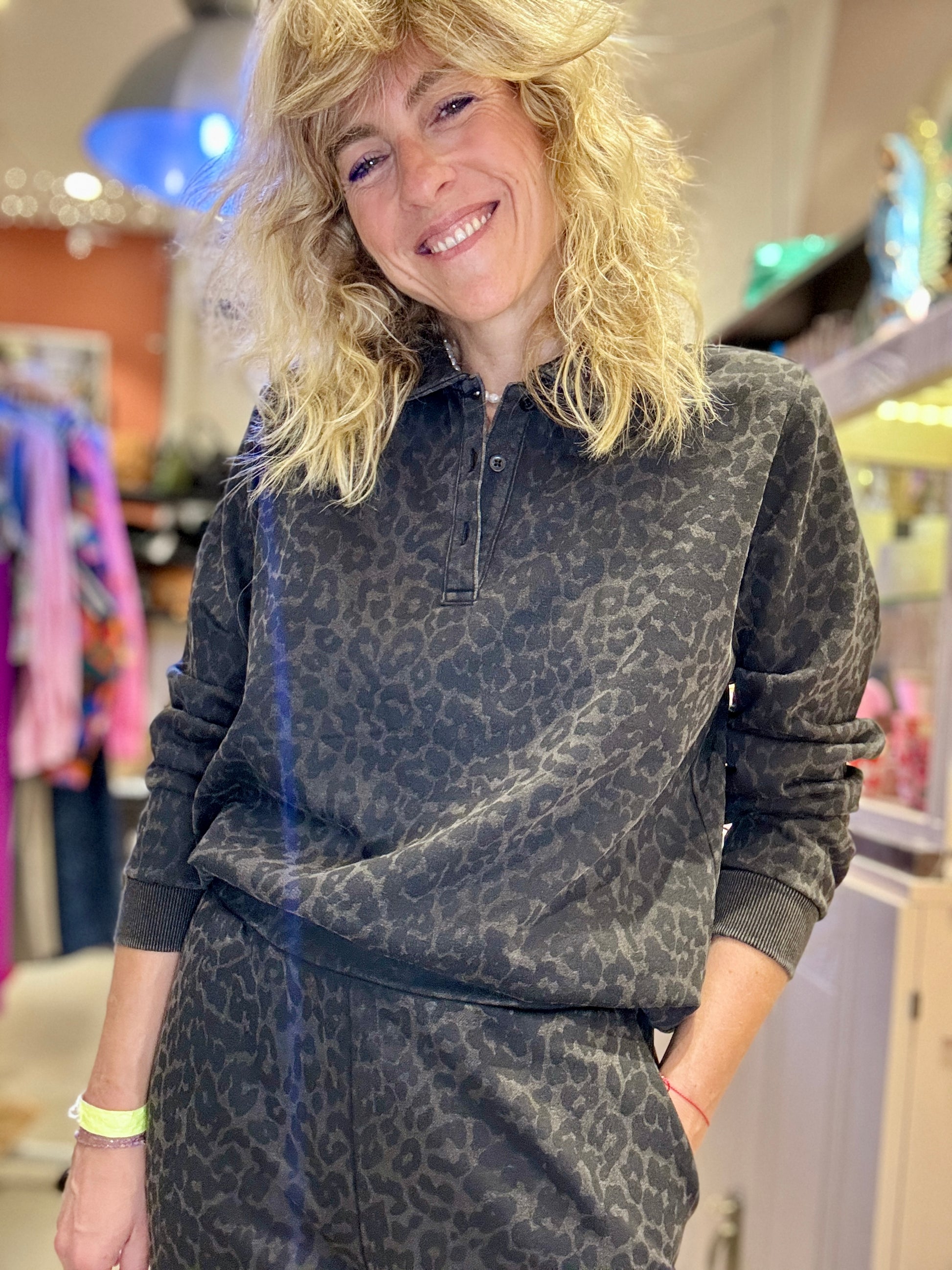 Sweat imprimé léopard gris.