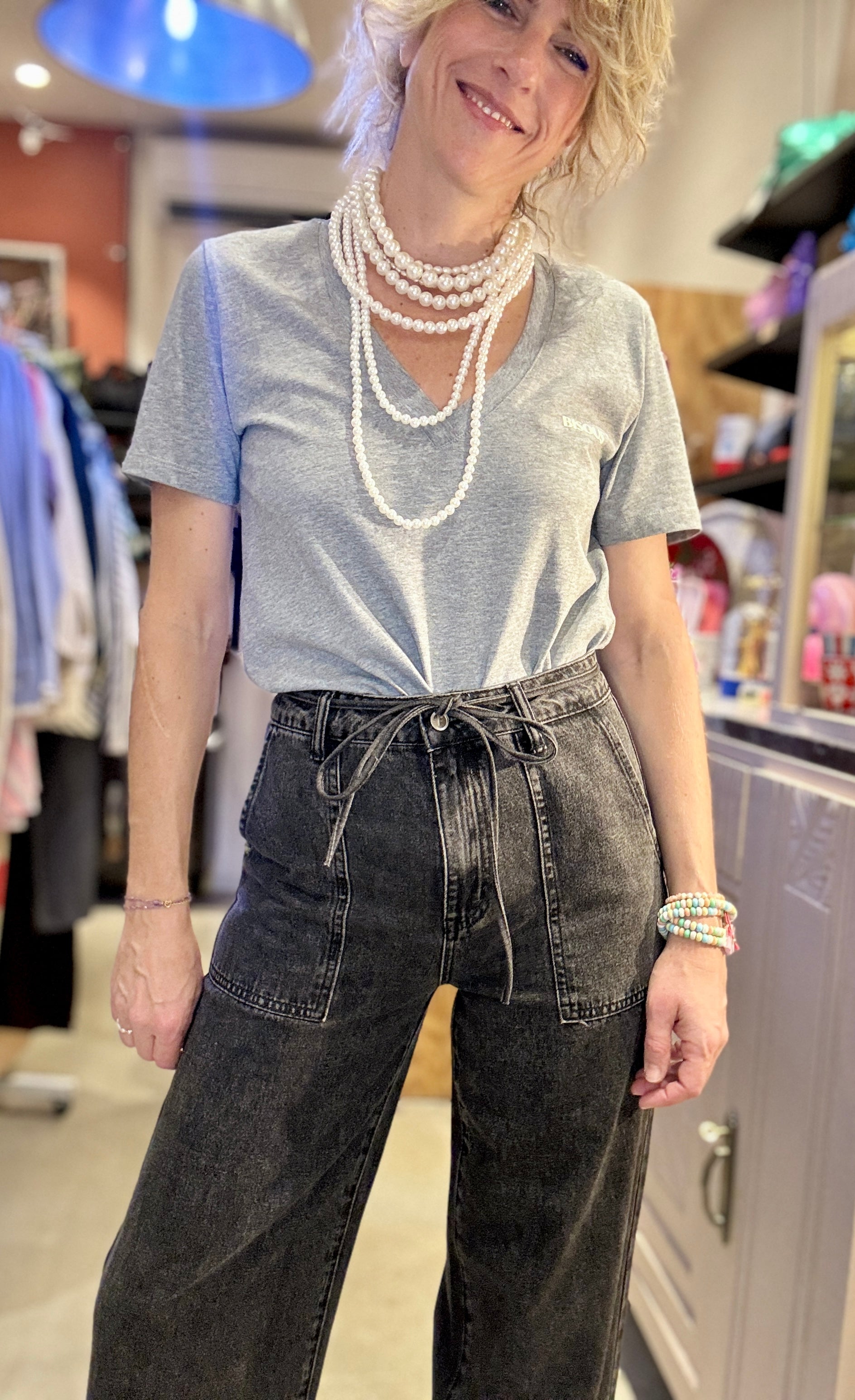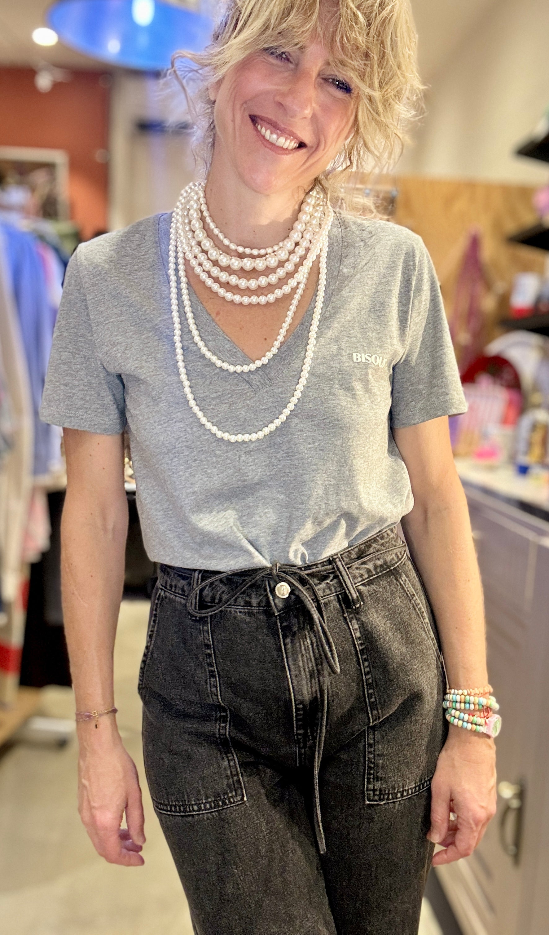 Coupe droite et ajustée avec col V profond, j'adore ! Un basique à mettre sous vos vestes !