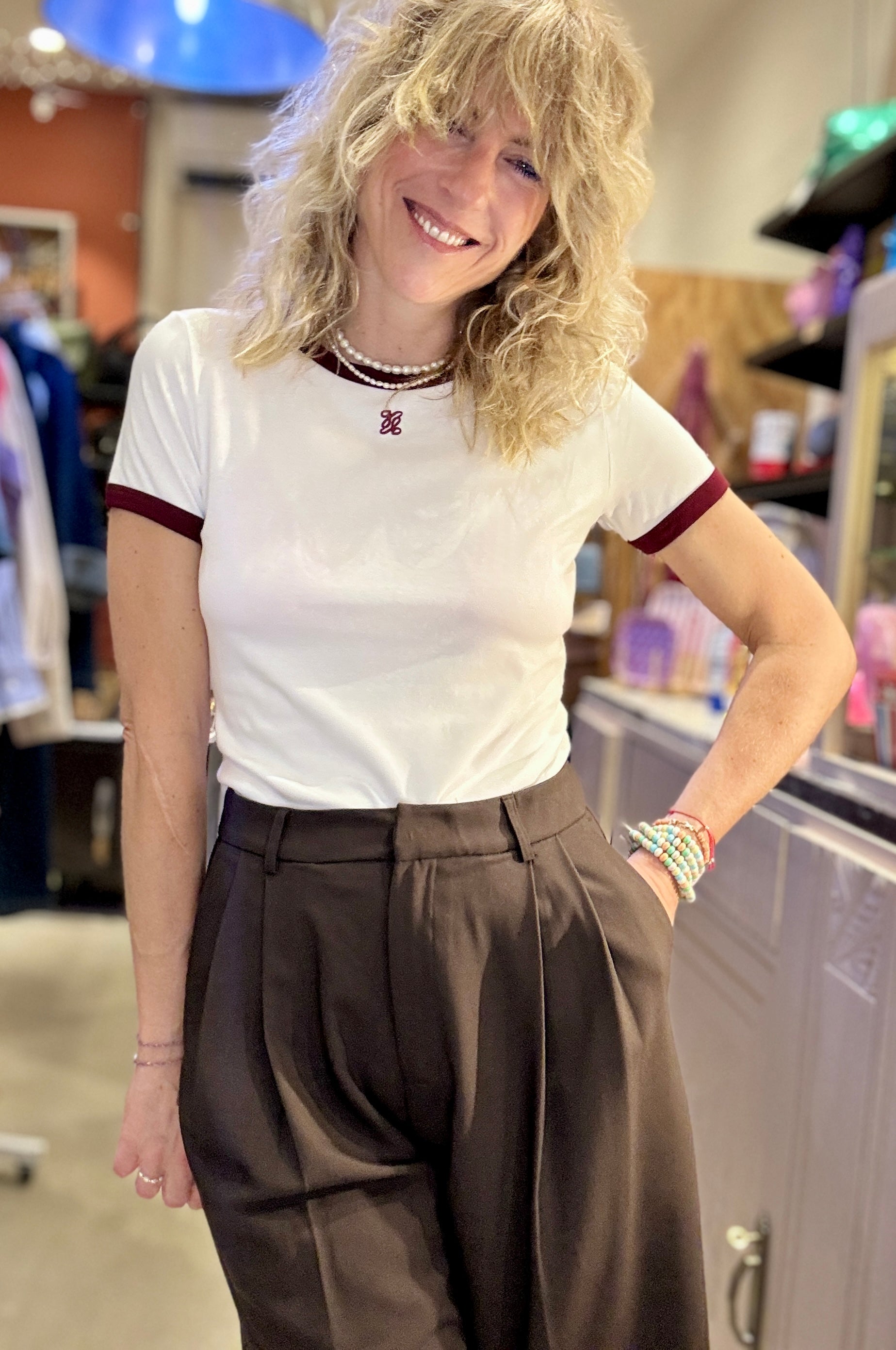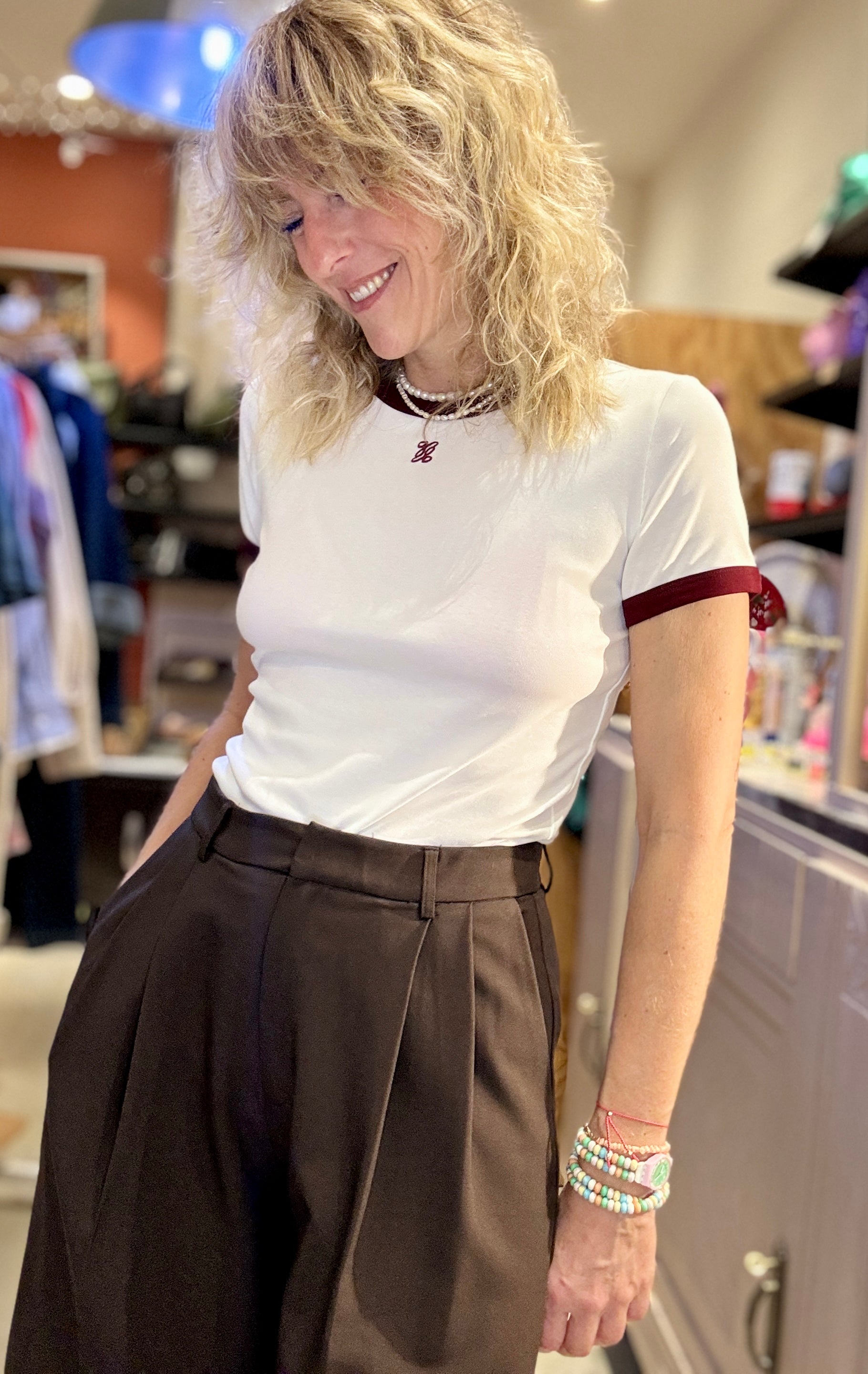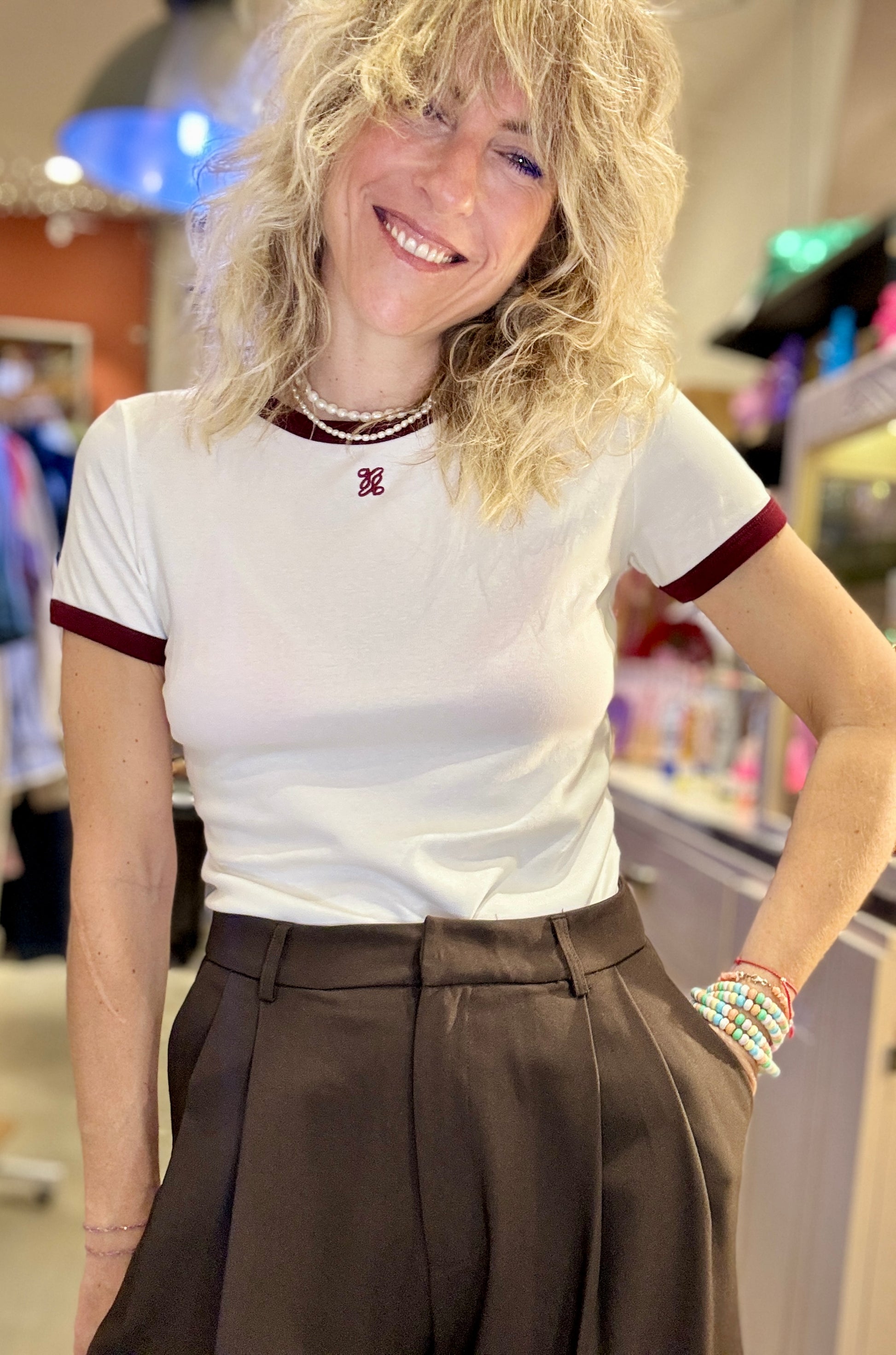 Col et manches avec bords contrastés bordeaux avec broderie logo sur le devant.