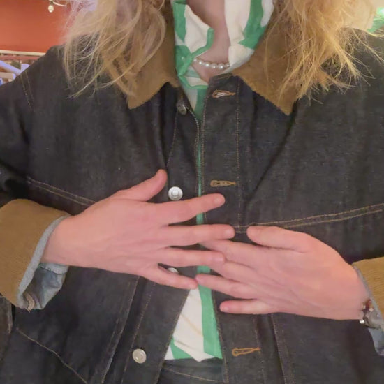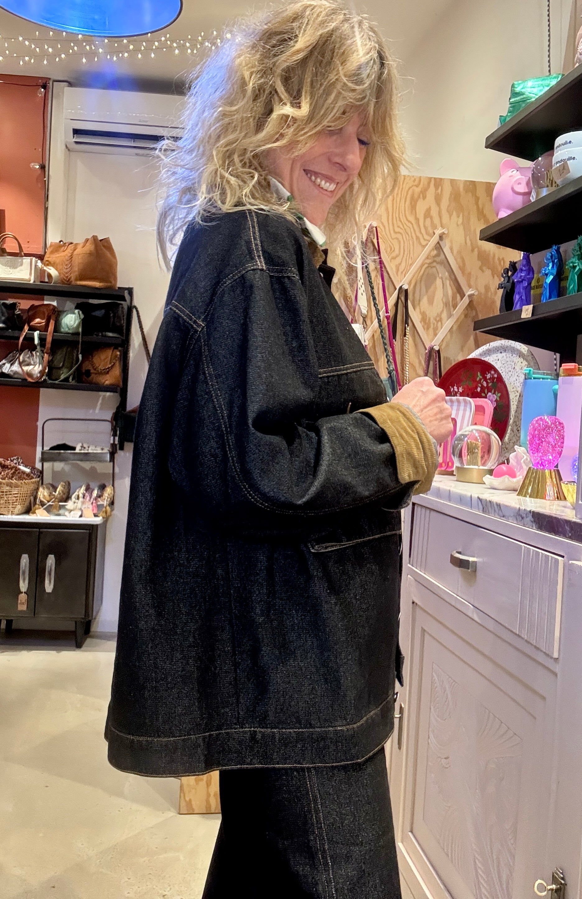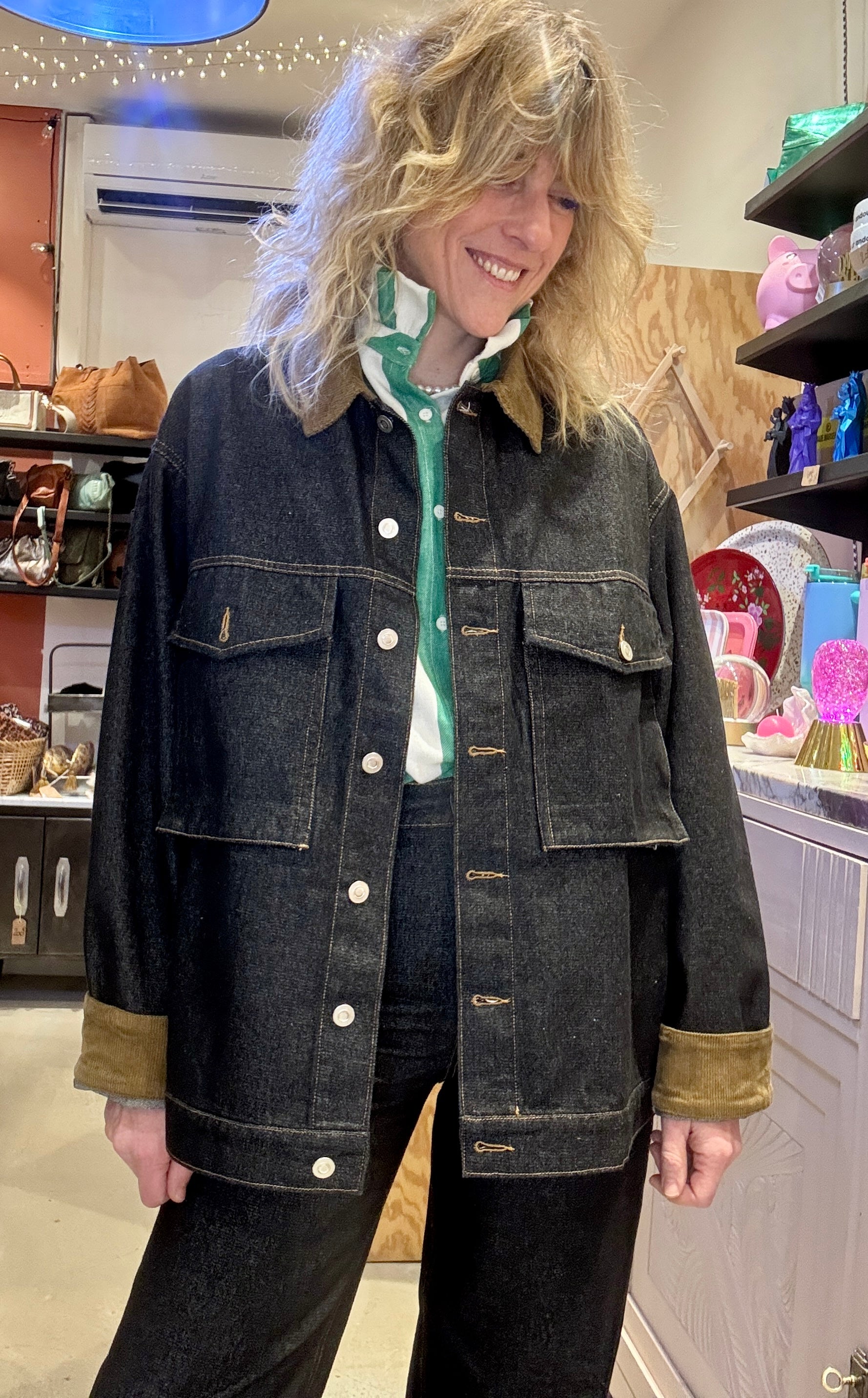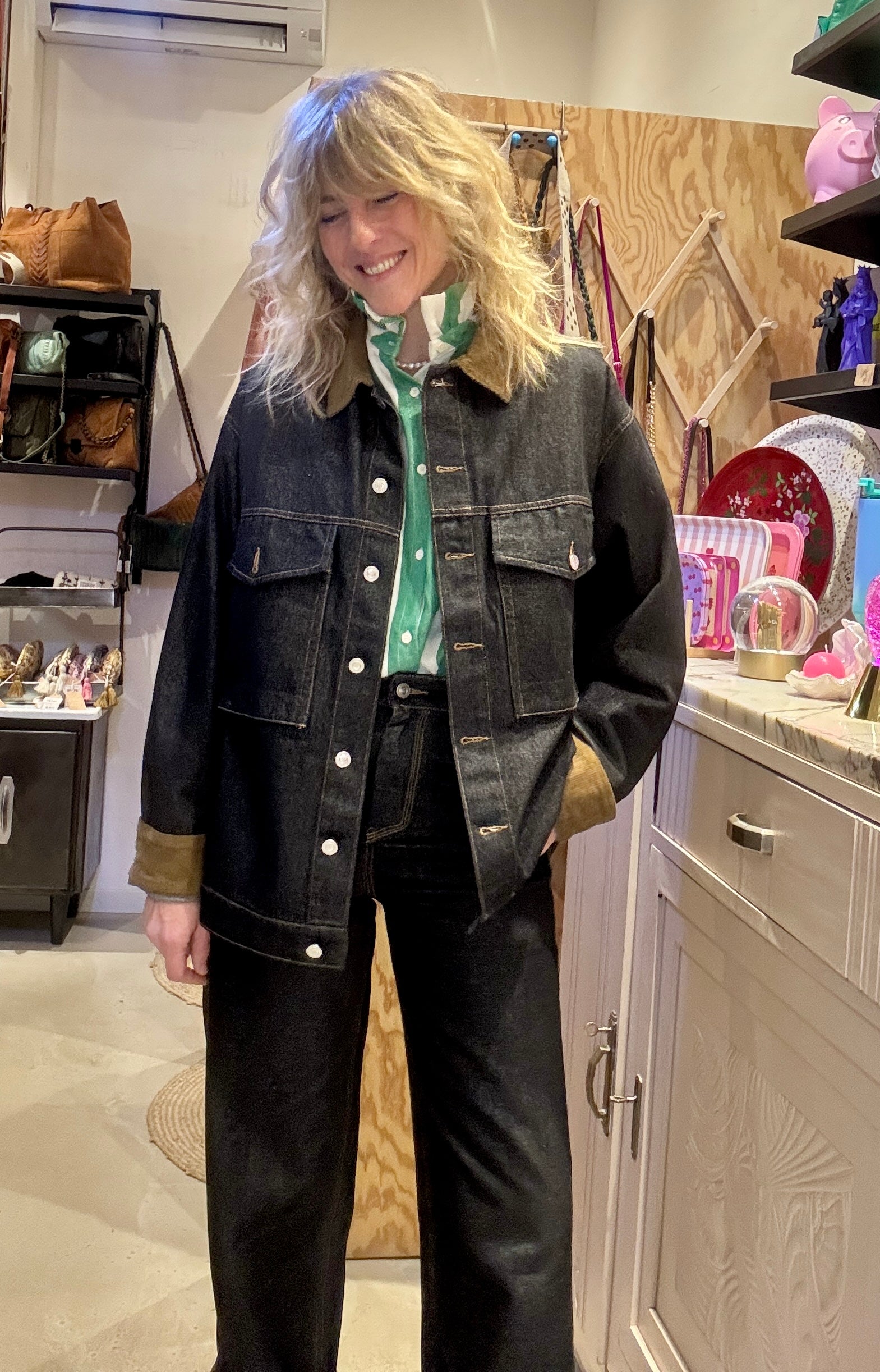 Veste barn jacket en jean brut, parfaite à porter en esemble avec le pantalon Alvin pour un total look. J'adore !!!
