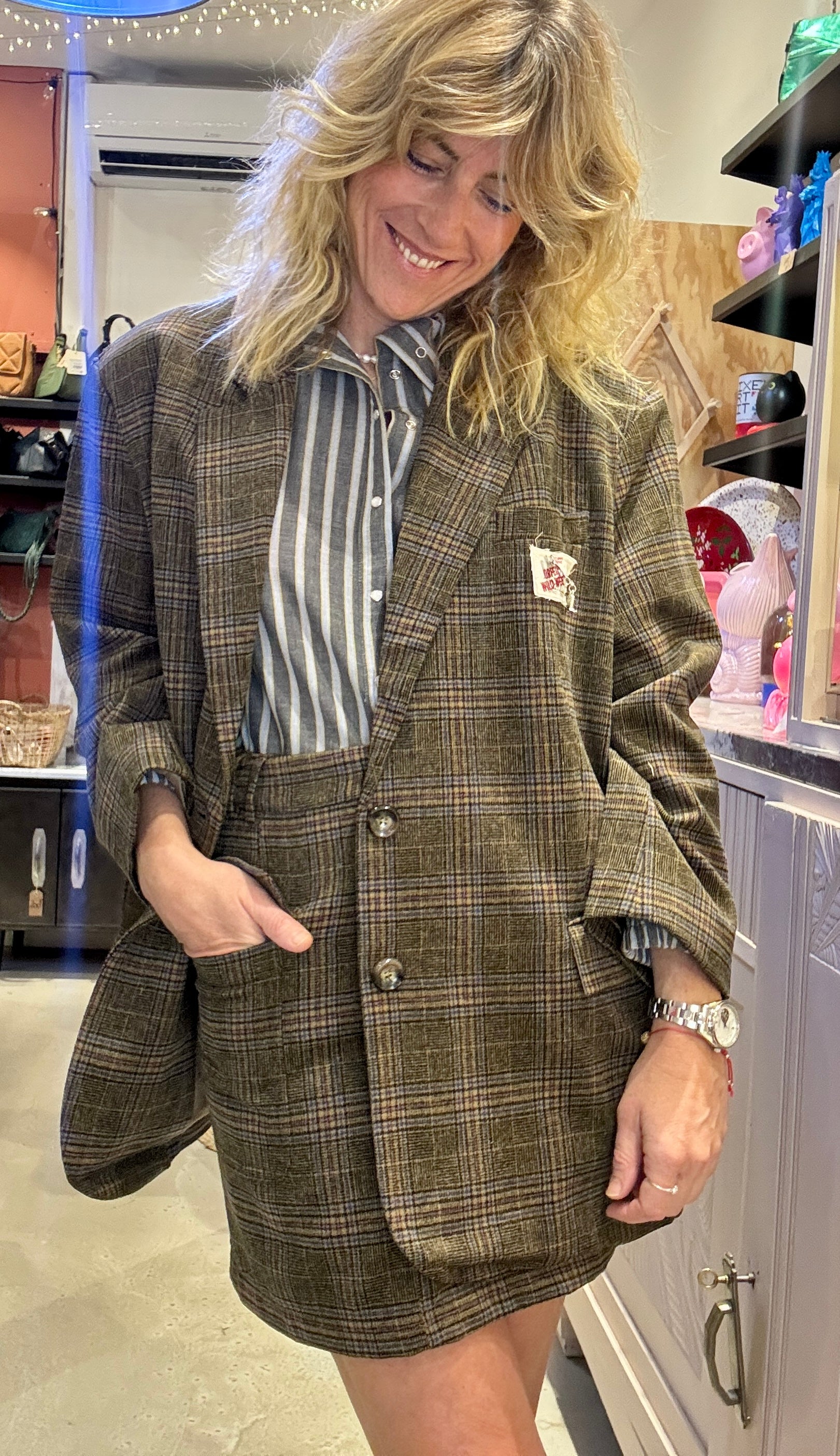 Magnifique veste oversize en lainage écossais, mon crush absolu en ensemble avec la jupe Oxford !