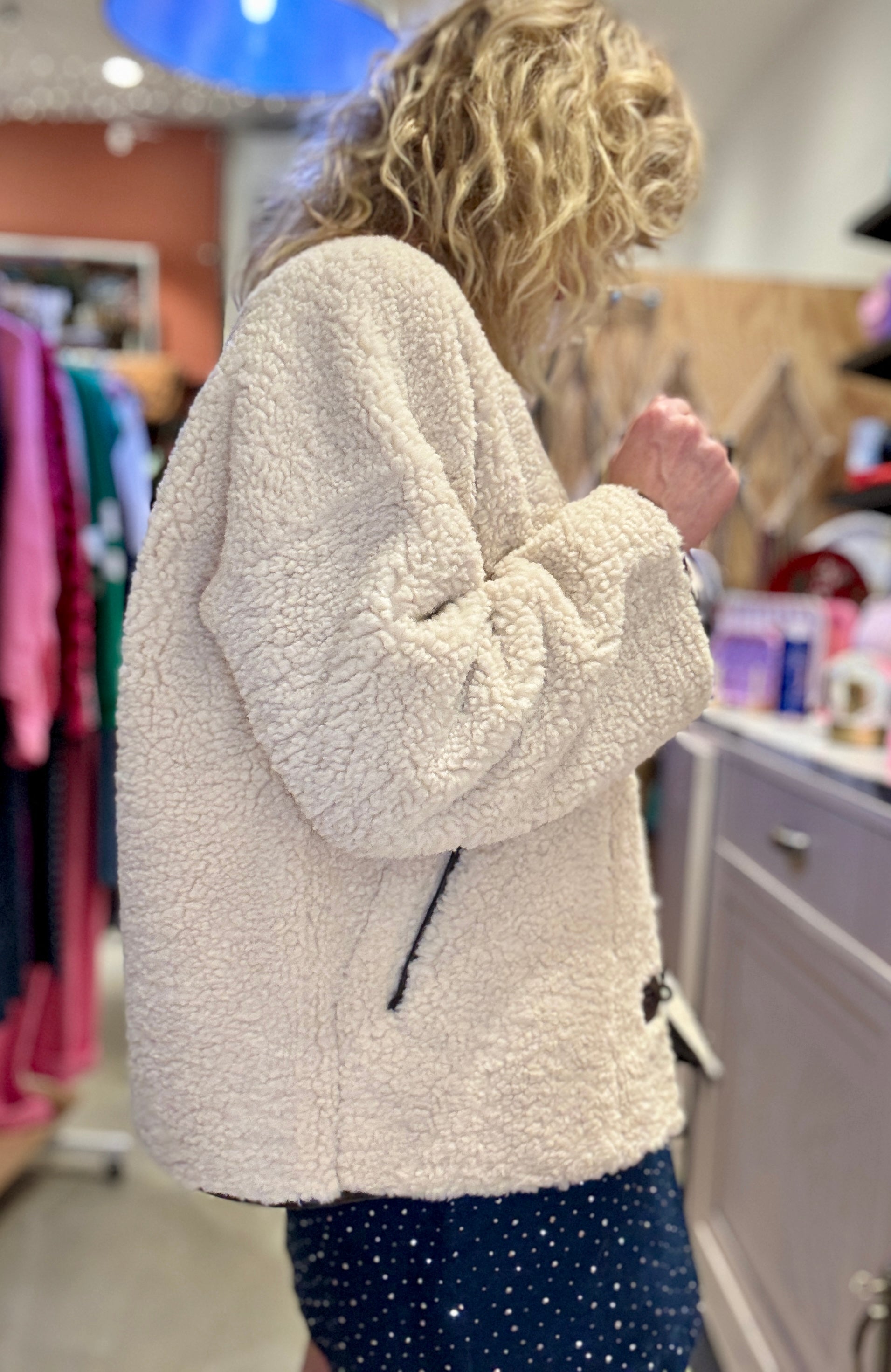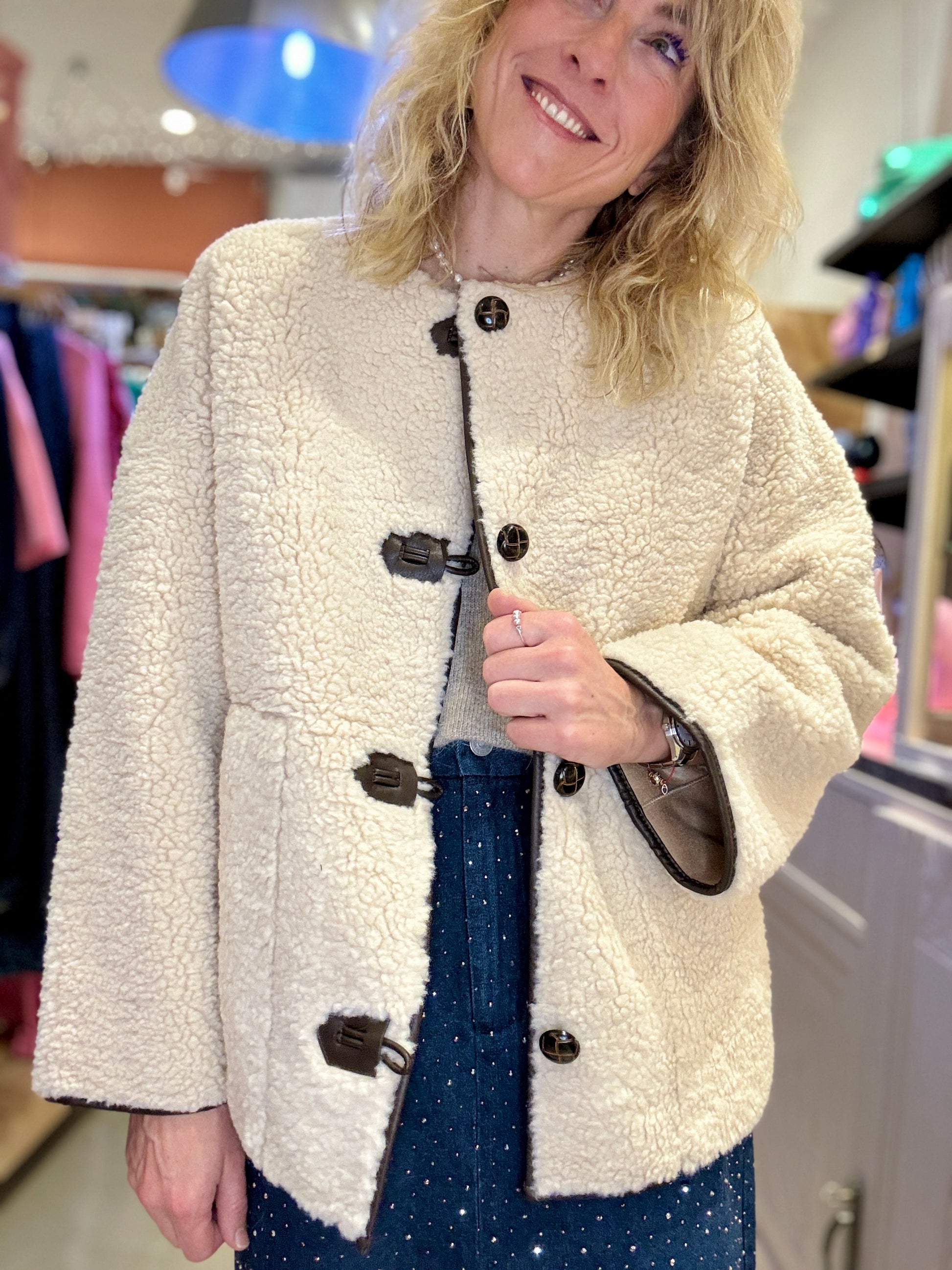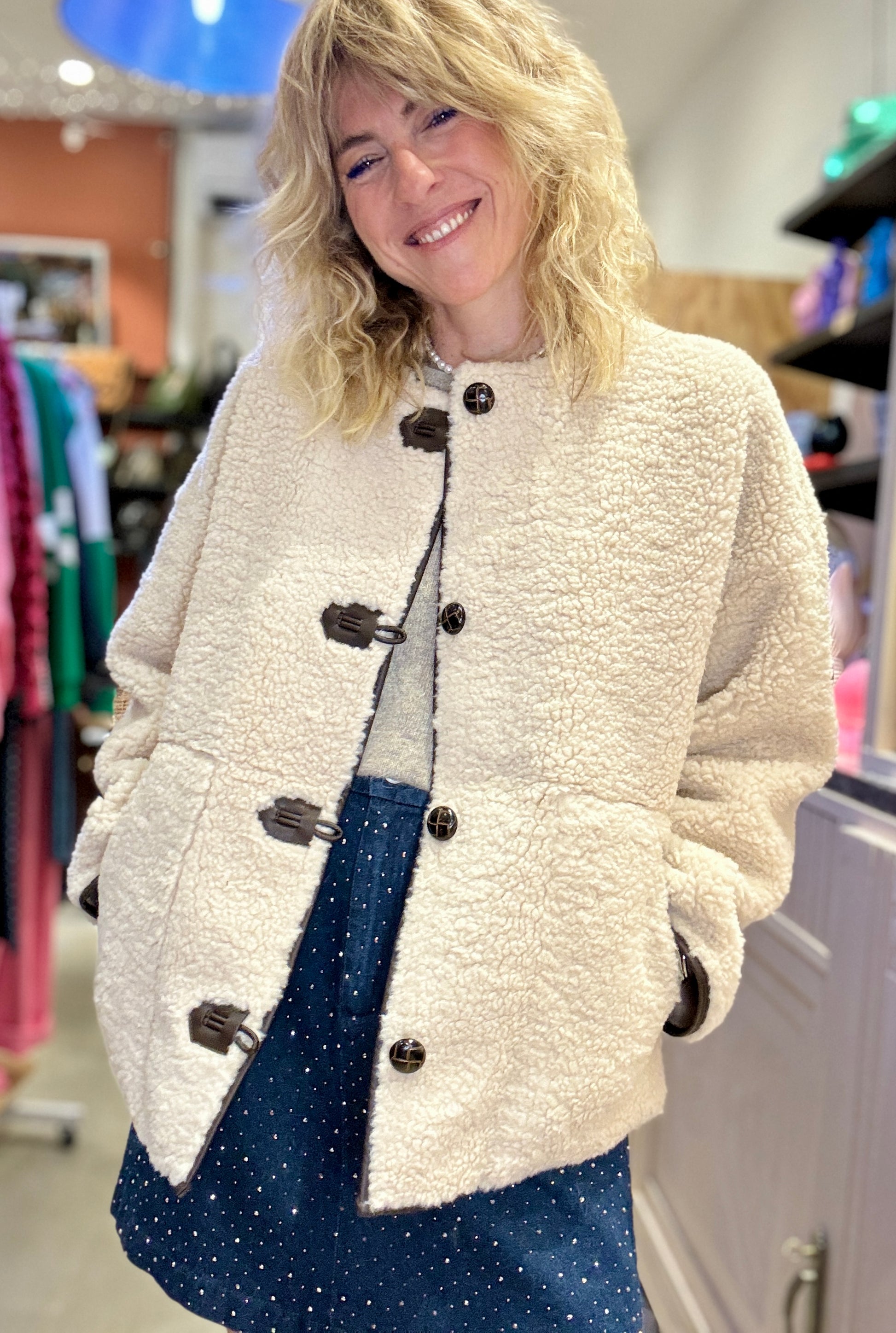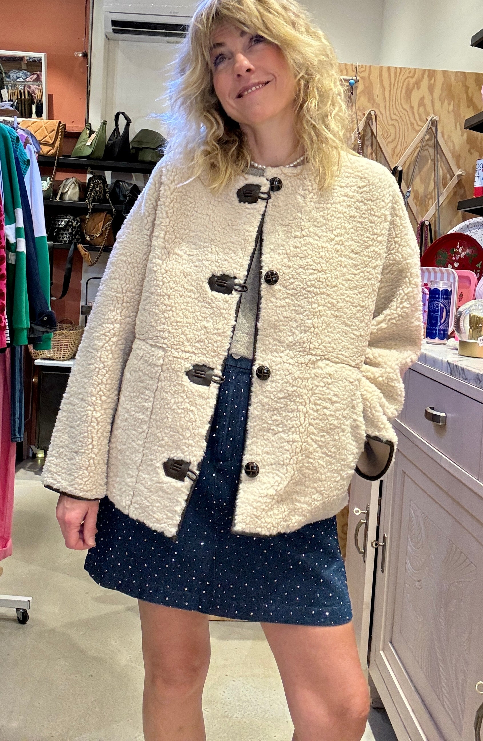 Veste canon en moumoute ultra douce imitation mouton retourné.
