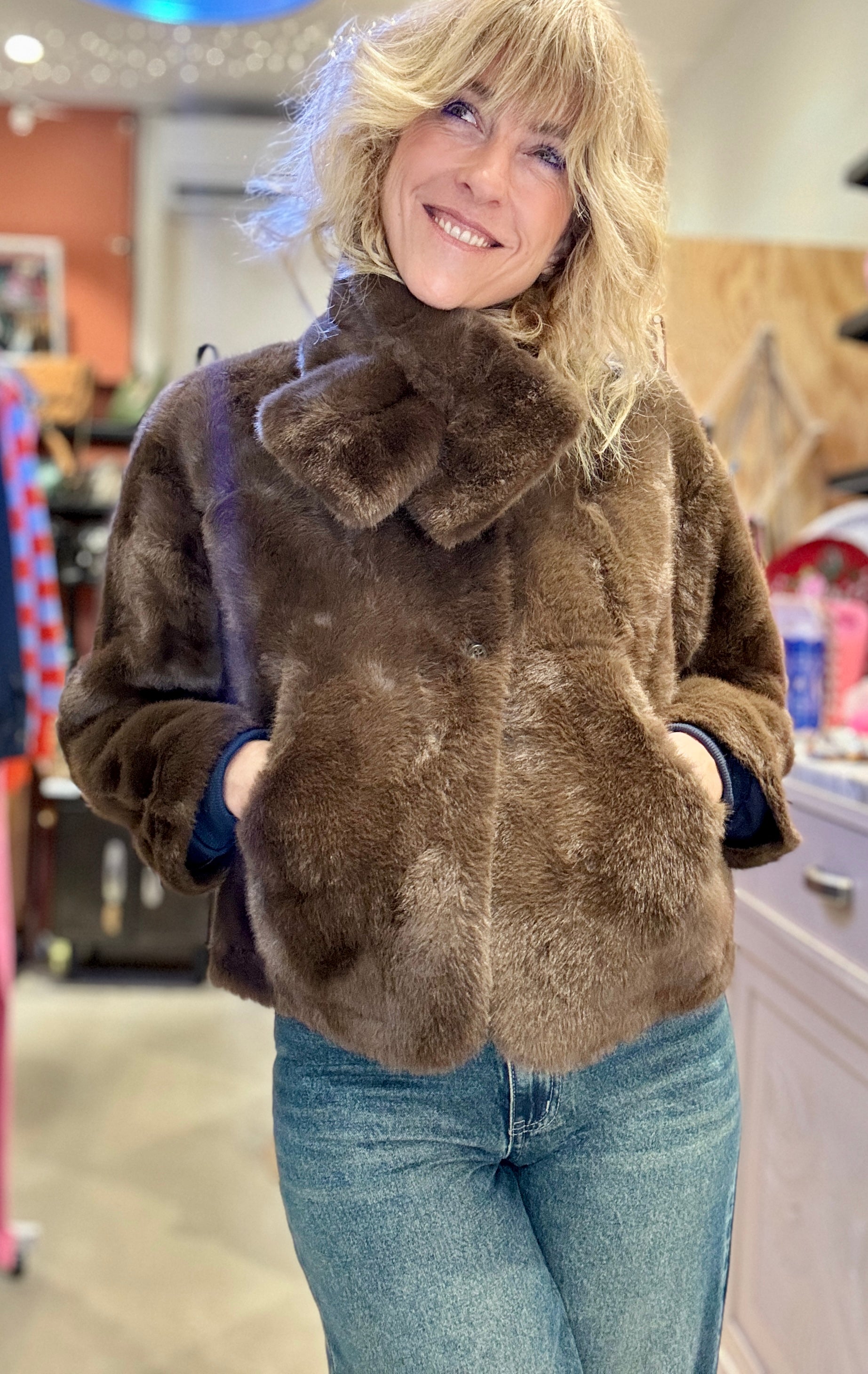 Coupe courte et droite avec col rond et petite écharpe pour le cou.